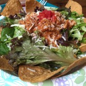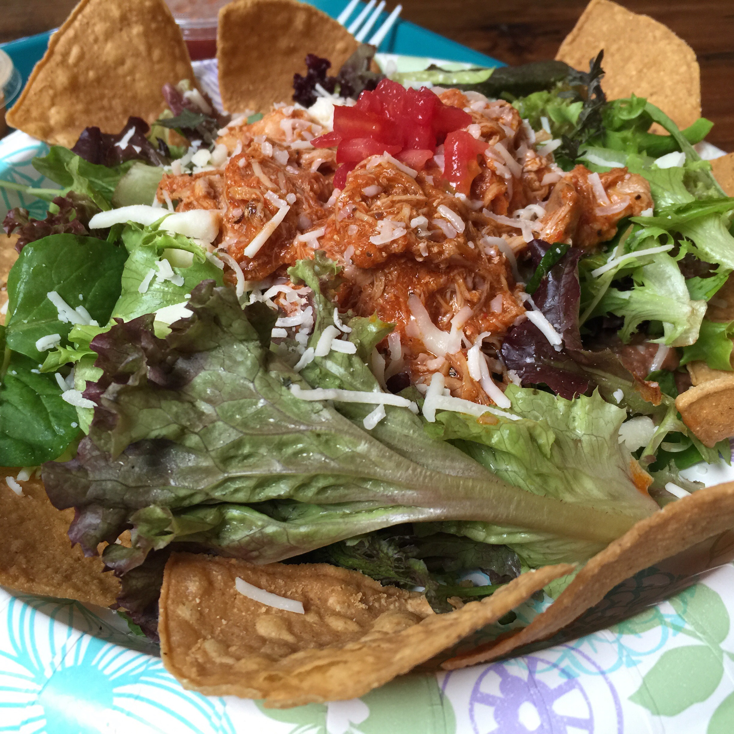 e, we headed toward the town of Waimea where we stopped at the Parker Ranch Shopping Center for lunch. The food court was very busy! I ordered a Mexican salad ($8.95) with shredded chicken from Los Tres Mex. It was tasty, but I wish it had a higher ratio of greens to the chicken ratio. The photo taken prior to me digging in and spreading the chicken around makes it look like a nice ratio, but in reality, there was a very generous amount of chicken and refried beans in this dish.