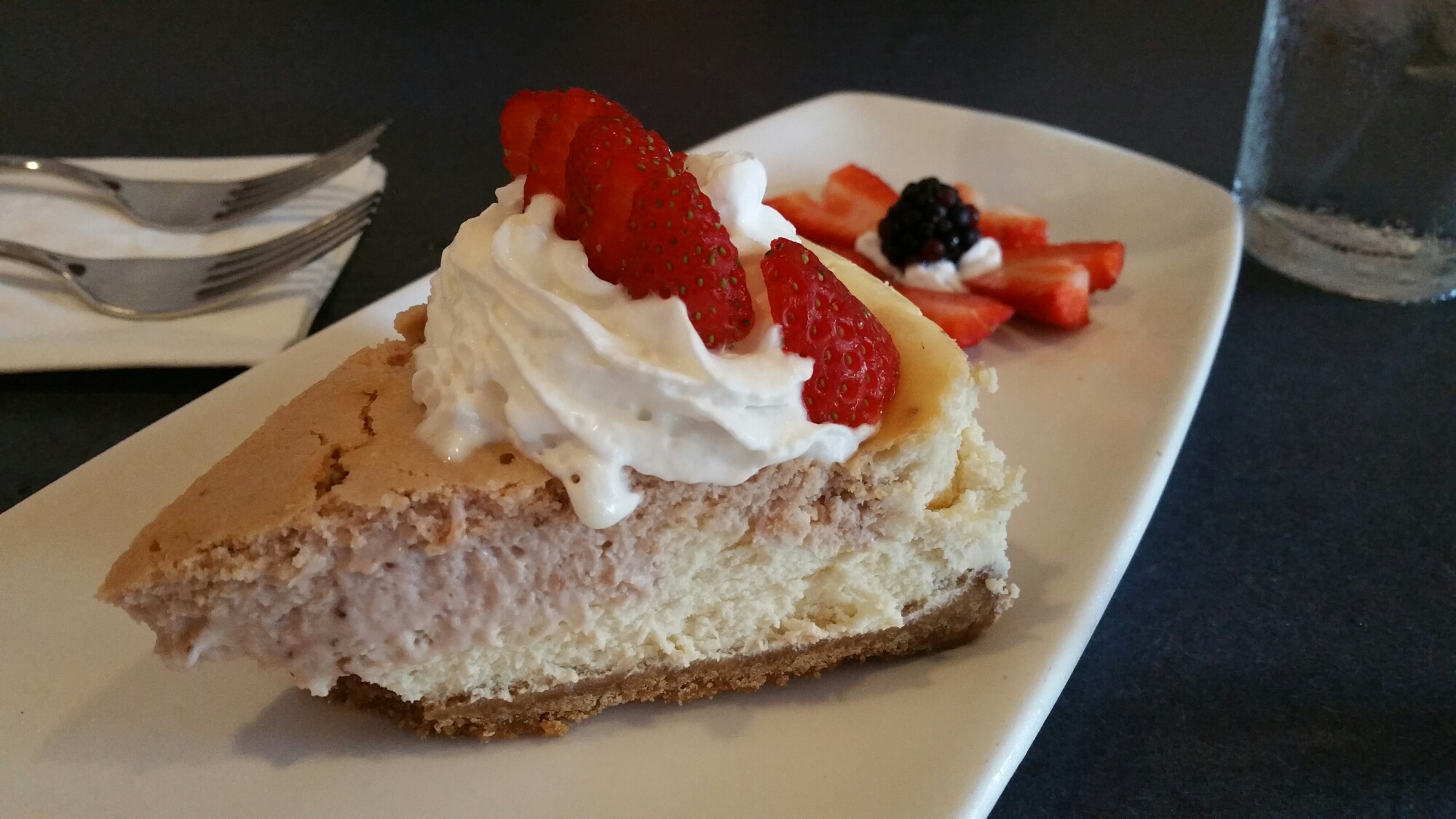 Even though Fran is on her limited carbohydrate diet she shared a yummy piece of Strawberry Cheesecake with me because we were celebrating! It was lighter than most cheesecakes but the perfect size to complement our entrées. The fruit was cool and fresh.