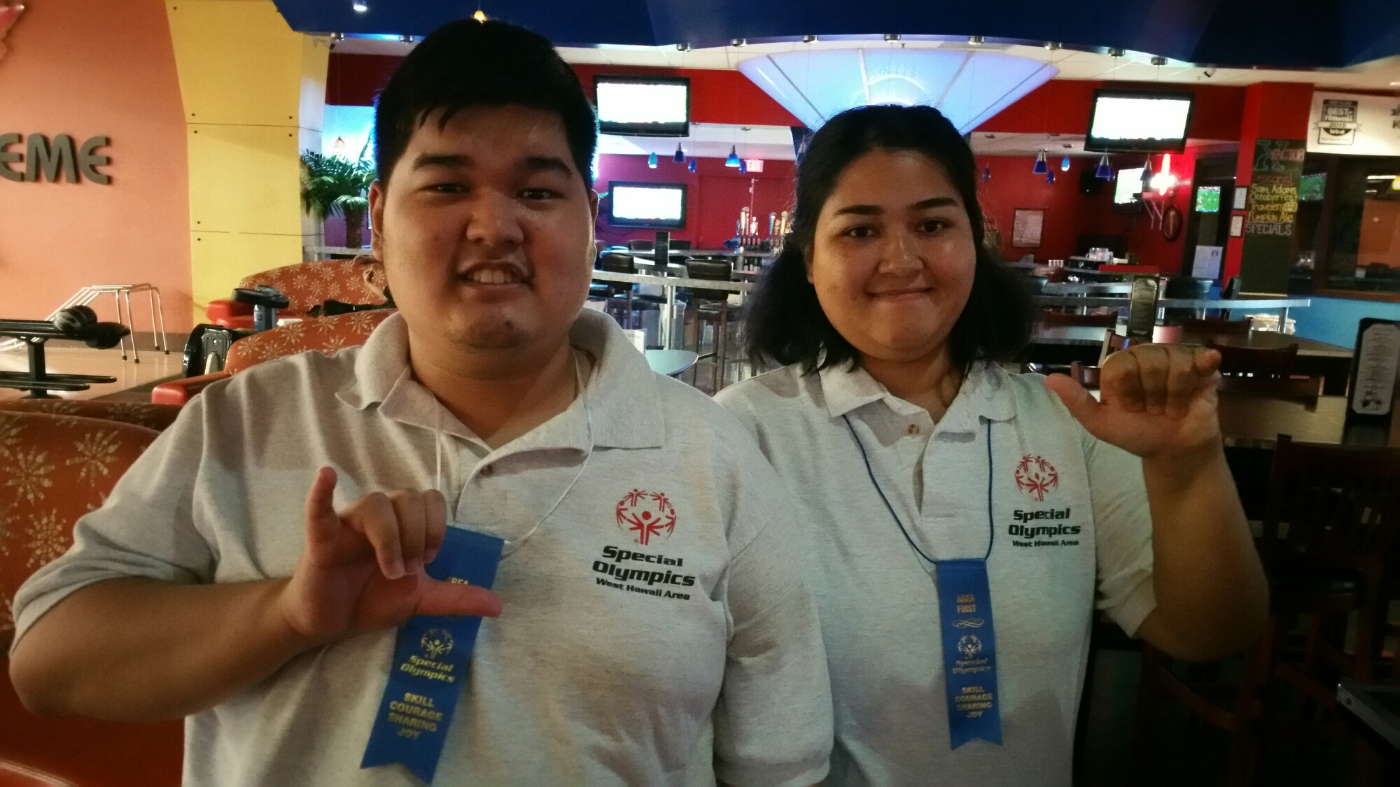 Teams are comprised of four people: Two SO athletes and two neurotypical peers. Cullen has a great teammate in “Duck”, an avid bowler from Waimea whose son is a participant on another team. Additional members Marinna and Jordan contributed heavily to the team’s blue ribbon performance for the day.