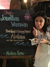 Our first dish of the evening, Waxman’s local abalone poached and fried and served with a caper lemon butter sauce was a delicious way to start the event. We then enjoyed Robert Gersetenecker’s honey glazed Korean fried chicken and pickled shrimp. Our new friend Norm raved about Chef Hugh Acheson’s tuna with Hamakua mushroom and mint on grilled bread. The crispy bread with the mushrooms were a great complement to the local ahi. Chef Seamus