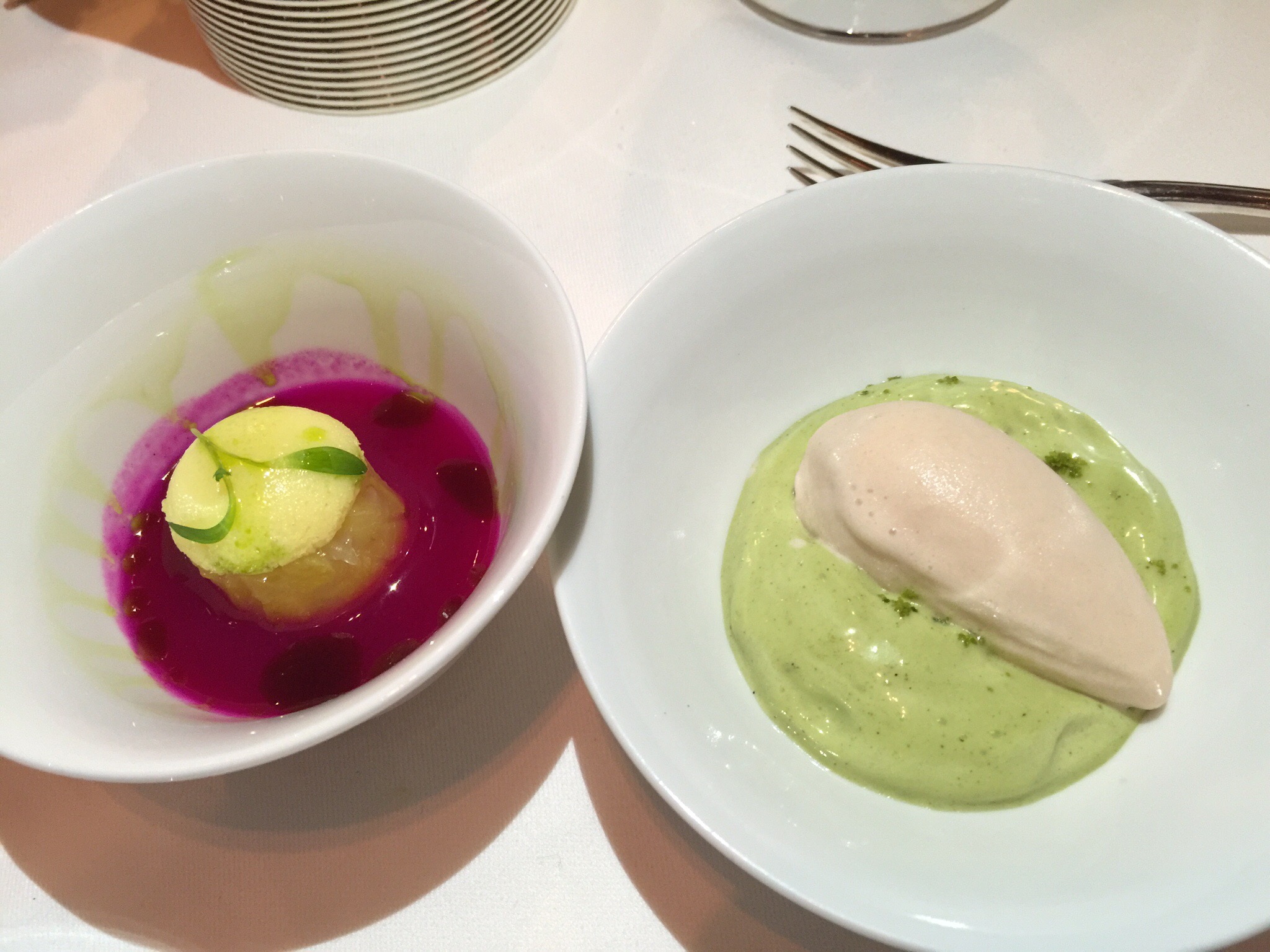 We ordered the 9-course Chef’s Tasting Menu along with some very special supplements. The food was even more spectacular than I imagined. Yes, the veal (Haidee’s favorite) and the lobster courses were a dream, but for me the unforgettable dishes of the evening were: