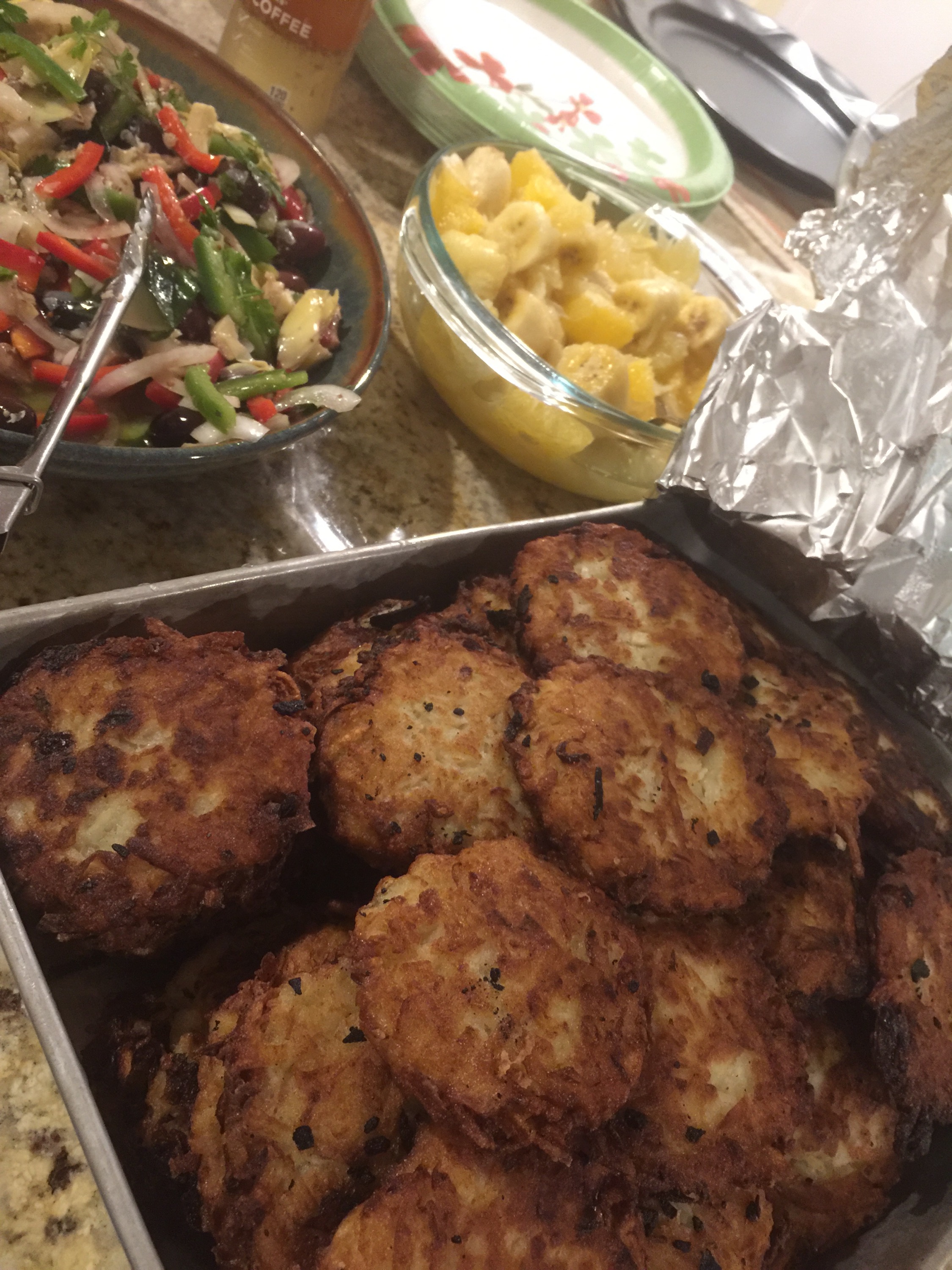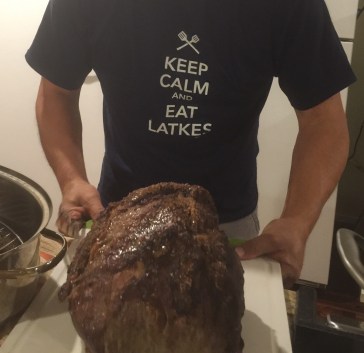 Kosher dinner to us means latkes, rib roast, roast chicken, challah bread, matzo ball soup, and many side dishes.