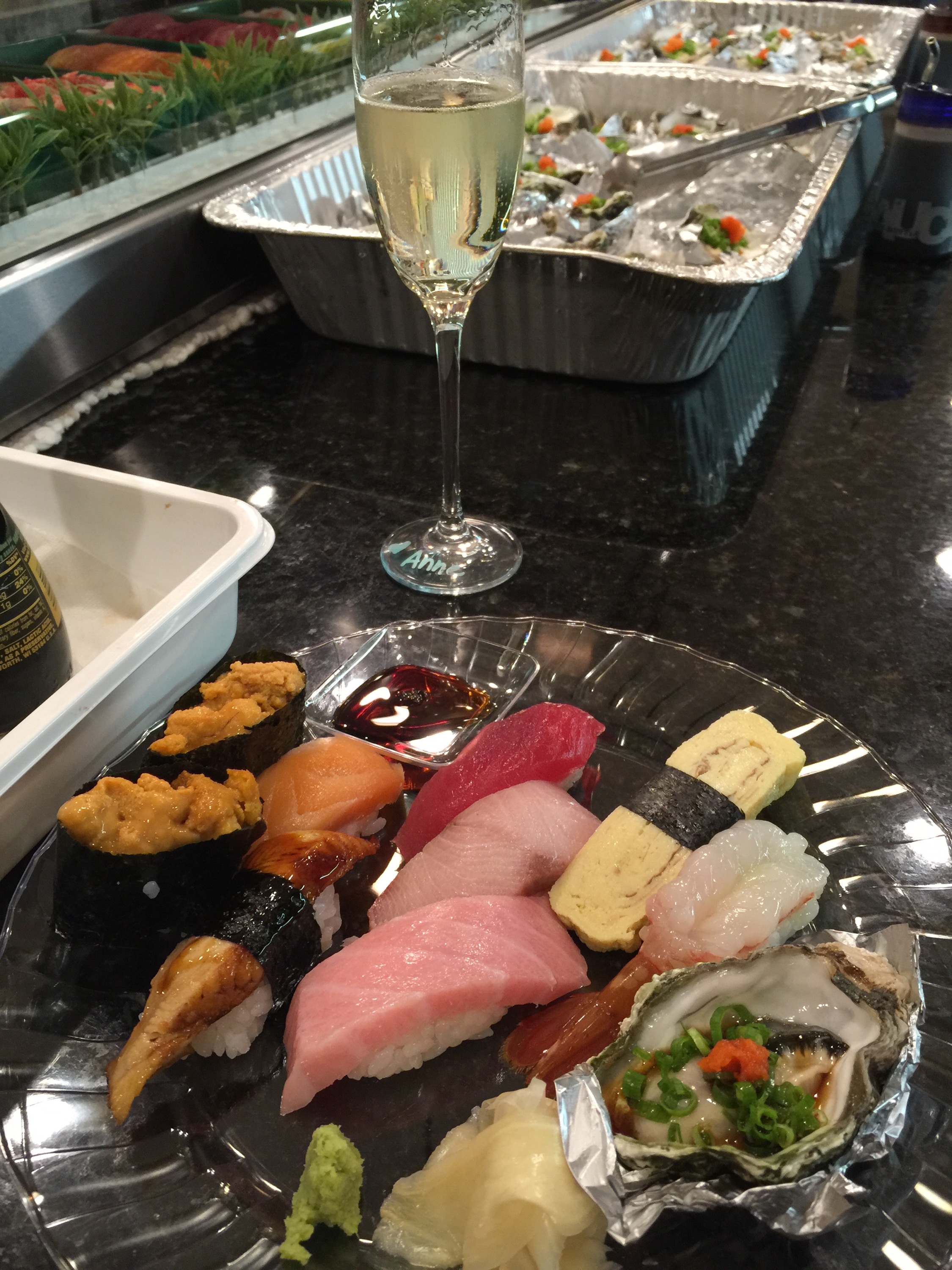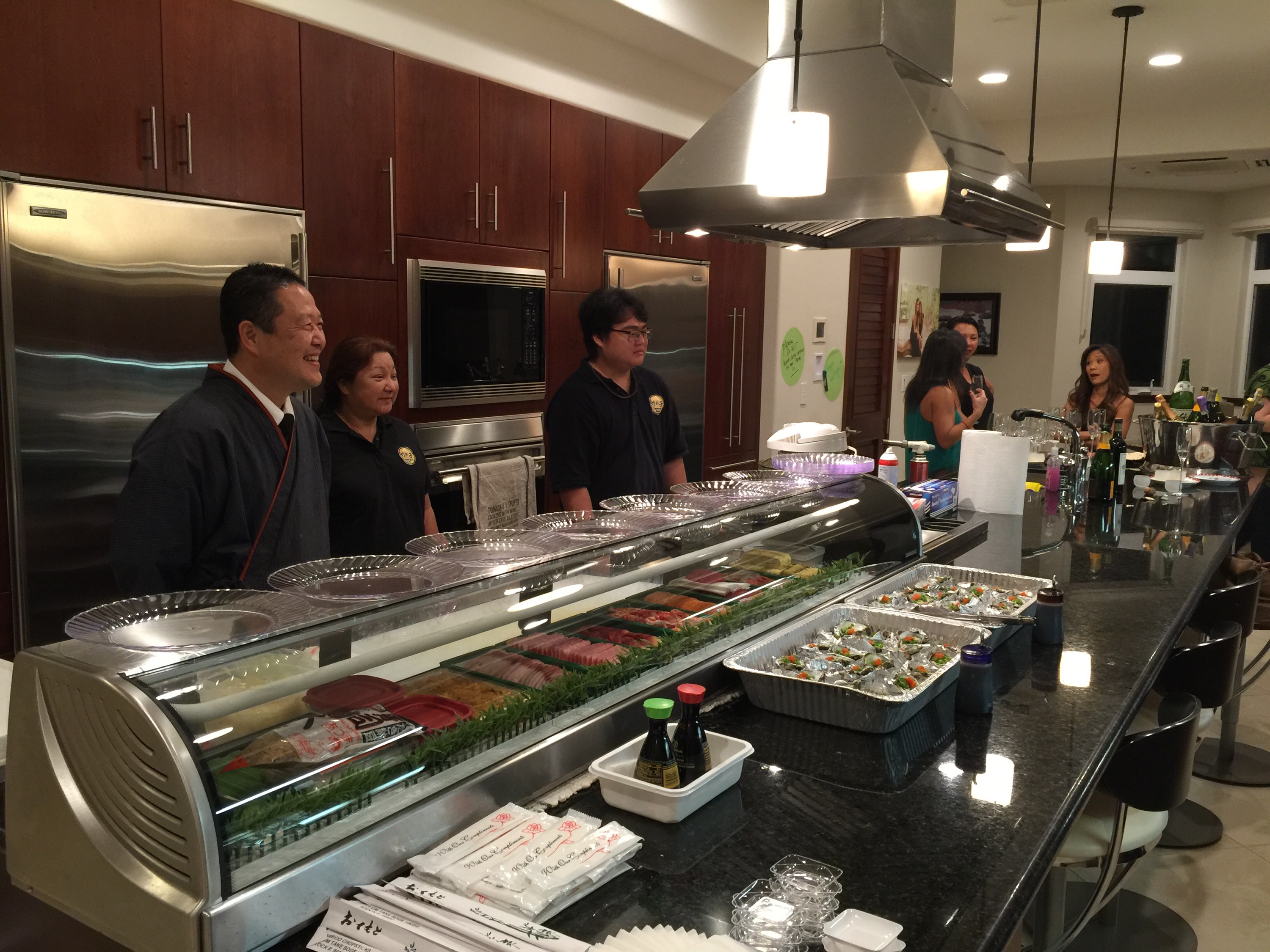 If you are interested in eating Takenoko sushi in 2016 and don’t have reservations yet, there is still hope for you.You can host your very own private sushi party in the comfort of your own home.  Here are some pictures from a recent party Chef Igarashi catered. He brings his sushi bar to your kitchen.  He only does this on the days his restaurant is closed, so you have to have your party on a Tuesday or Wednesday. He is already booked every Tuesday/Wednesday for the rest of 2015, but feel free to call for your reservation to enjoy some great sushi for 2016.Living Hilo Style with great sushi!