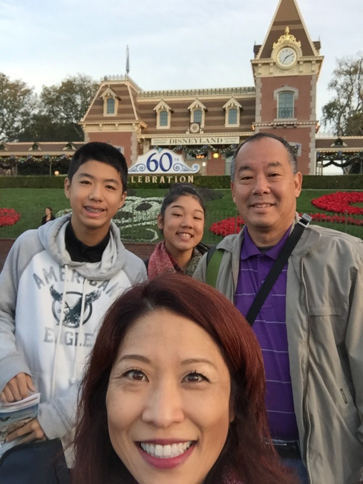 So lucky to be spending Christmas together as a family at the happiest place on earth–Disneyland! No selfie sticks allowed in the park, so my head looks extra big in our family selfies. That’s ok. Its worth it to have the whole family in some pictures. The weather was perfect–on the first day–a little warm during the day and a little cool at night. The second and third day got progressively colder. In fact the fireworks were cancelled all three days we were there due to high winds.