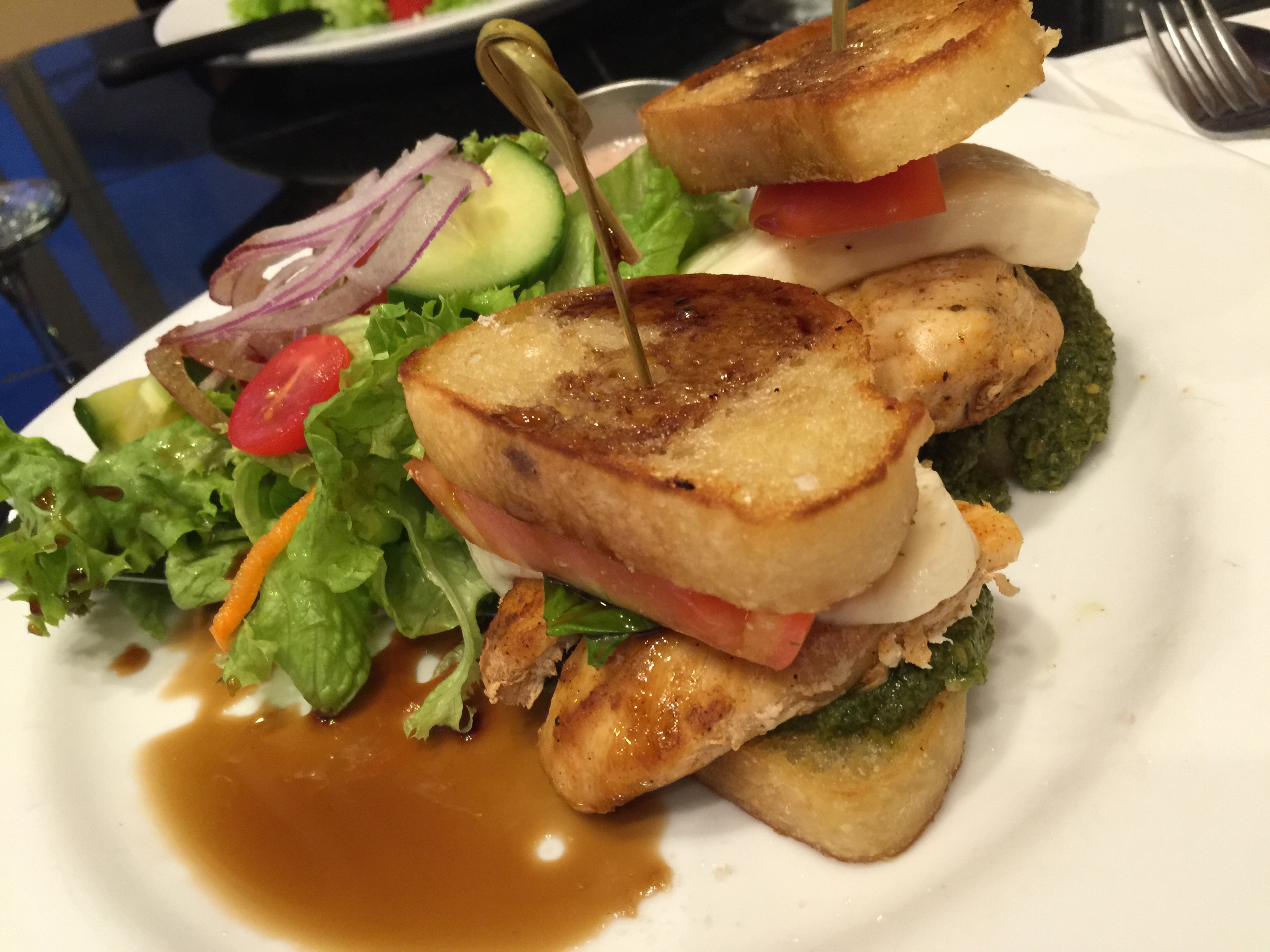 We went to Pineapples in Downtown Hilo since it has a casual, fun atmosphere. In addition, one of my friends has some food allergies and the menu at Pineapples is the best for her special menu requests. They have a nice selection of cocktails and the menu offerings are diverse. I had the chicken Caprese sliders, a special that evening.