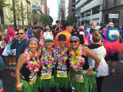 I went to Sonoma with some girlfriends. After the Sonoma portion of our trip, we planned to stay in San Francisco the night before leaving California from Oakland so that we would be close to the airport for our early flight the next morning. As we researched hotels, we found that it was very difficult to find a room at a reasonable price. We knew there had to be some reason for these high prices. We found out that the famous Zappos Bay to Breakers 12K was scheduled for that same weekend. No wonder there weren’t any rooms in the city!  A couple of my girlfriends are pretty serious runners and  were very excited about registering for the run so the four of us decided to register. It seemed like a great and fun idea at the time. The date seemed so far away and I felt like I would have so much time to train. As time does in a situation like this, it flew by and race weekend was upon me.  Ready or not–I was in.