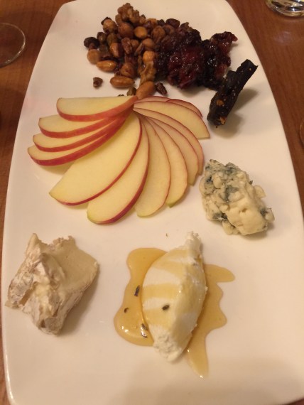 We enjoyed our cheese plate. We could customize our plate and we decided to get one cheese each from cow, goat, and sheep. It came with some sliced apples and dried fruit.  Delicious!  I need to do this at home with some crusty bread and some cured meats and a salad like the one below. Perfect!Love this salad.  Fig and arugula salad.  Toasted pecans, Mano Formate pancetta, laura chenel chevre, fig & port vinaigrette.