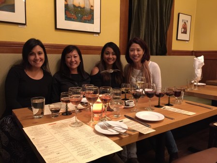 Even though the four of us are similar and are great traveling companions, we aren’t exactly the same. Between the four of us, we ordered a variety of wine flights~rose, red, and white. We shared and were all happy with our choices.There were a lot of glasses on the table.We liked that the glasses were eclectically different. What I didn’t realize until after the trip is that the glasses were organized by height to help the servers figure out which wine is which. I had the red varietal fligth that included the dominant red grape varieties in France’s Rhone valley. (2013 Frick Counoise, Dry Creek Valley; 2014 Lioco Carignan, Mendocino; 2014 Skinner Mourvedre, El Dorado; 2012 Mathis Grenache, Sonoma Valley; 2013 Highway 12 Reserve Syrah, Sonoma Valley)