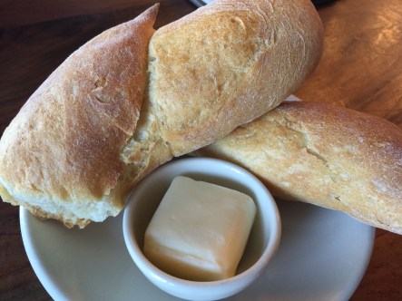 The server brought warm crusty bread to our table to snack on as we waited for our food.