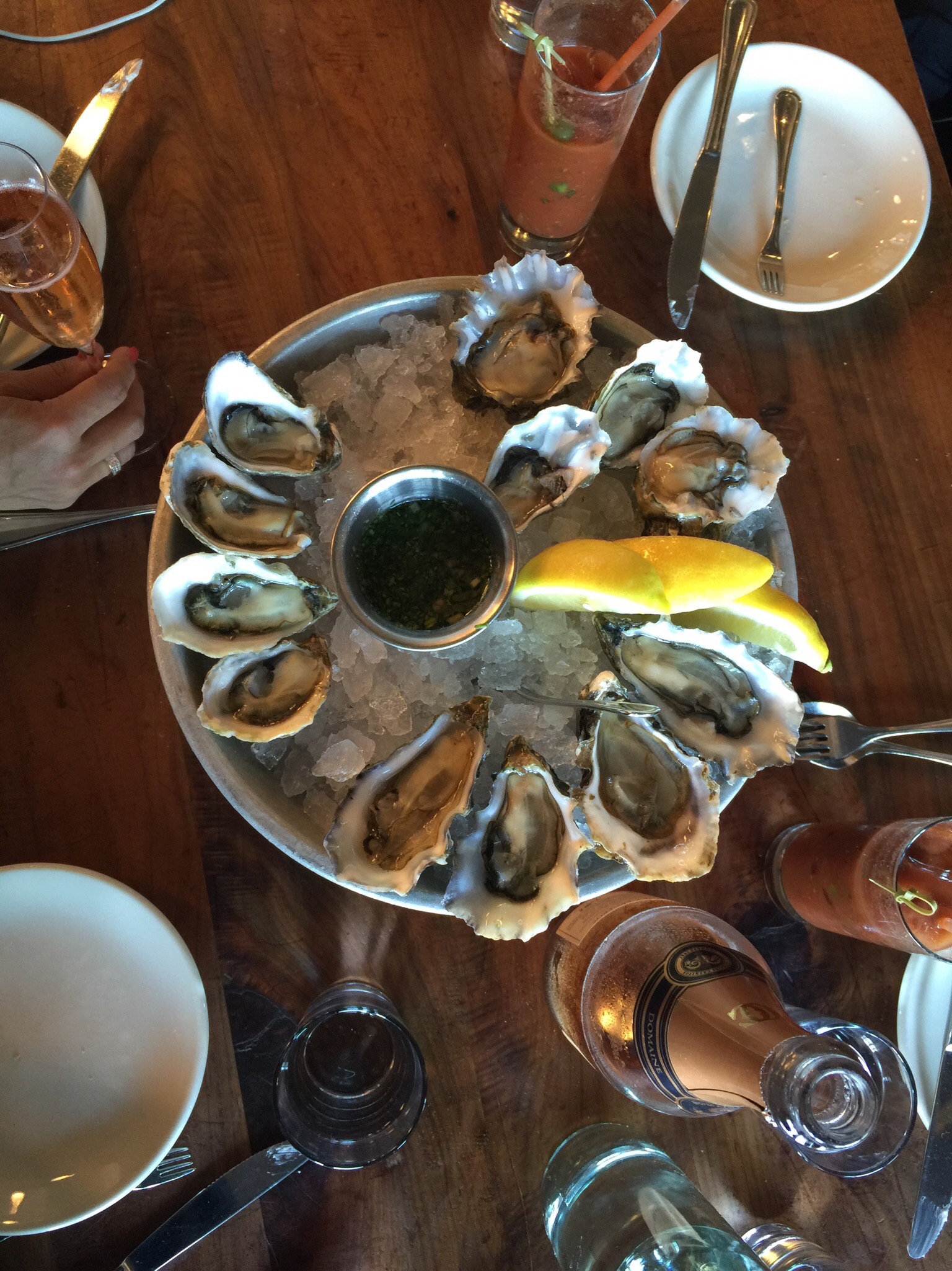 Have you been to Hog Island Oyster Co. in the San Francisco Ferry Building? I have and I love it. They have outdoor and inside seating and the oysters are fresh! After the Bay to Breakers, we decided to go to Hog Island since the Hotel Vitale where we are staying is right across the street from the Ferry Building.