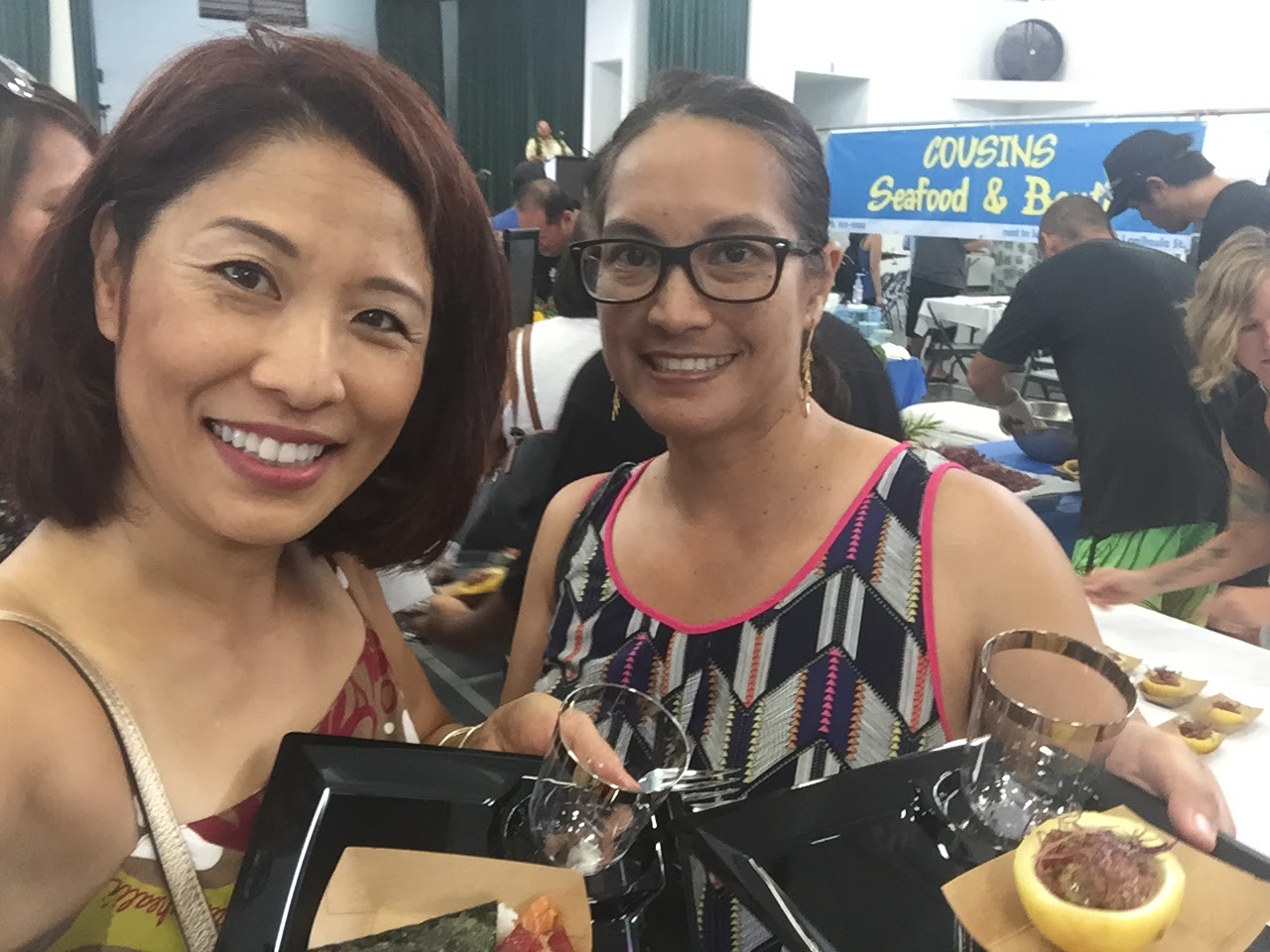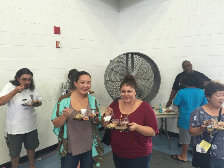 Anne and I were able to sample almost every vendor’s offerings – a variety of fish poke, ulu, poi, kulolo, beer, and iced tea left us full and satisfied in no time! The one downer was the heat in the building, partly due to Tropical Storm Darby, but we were grateful to be spared of her destructive path.