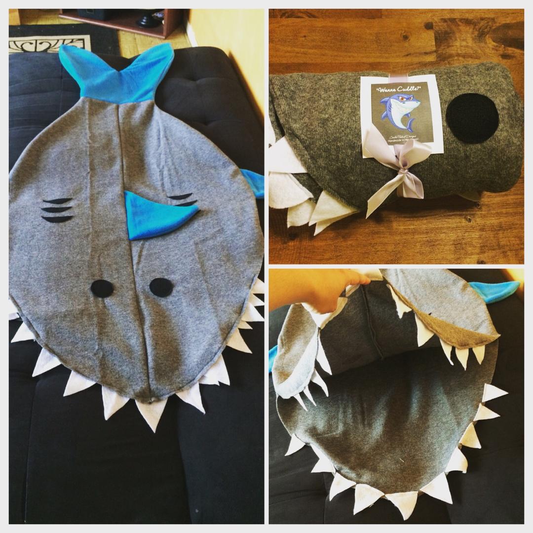 So she came up with a shark blanket, inspired by his spikey hairdo and an idea for his sister’s mermaid tail blanket.  He loved it!
