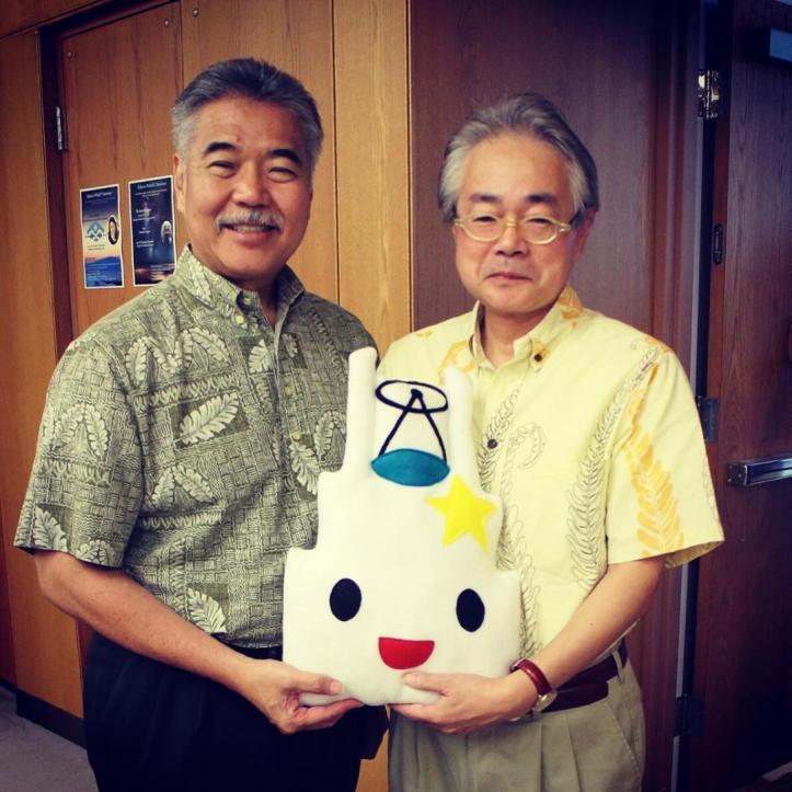 “Subby” with the Director of Subaru Telescope, Nobuo Arimoto, and Hawai`i Governor,  David Ige.