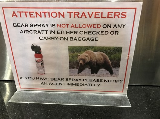 I did not get to see any bears while I was there but there must be more than a few people who carry bear spray with them. I saw this sign at the airport while checking in. Luckily I did not have any bear spray in my checked or carry-on baggage when I was checking in for my flight. Living Hilo Style in Bozeman, Montana.