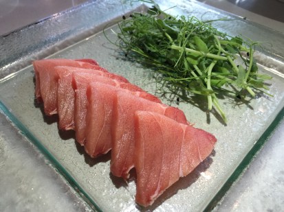 The sailfish sashimi with truffle ponzu sauce had a clean flavor. It was cut into triangles reminiscent of a sail–I’m not sure if that is what the chef was going for but that is what I got. Oishii!