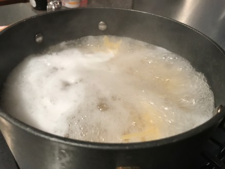 While the smoked meat and garlic were cooking, I boiled some pasta.