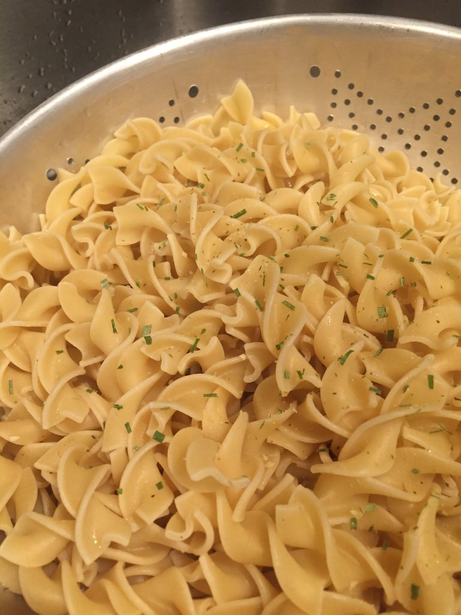 - If using, bring a large pot of water to a boil and cook egg noodles according to directions (about 7-8 minutes.)