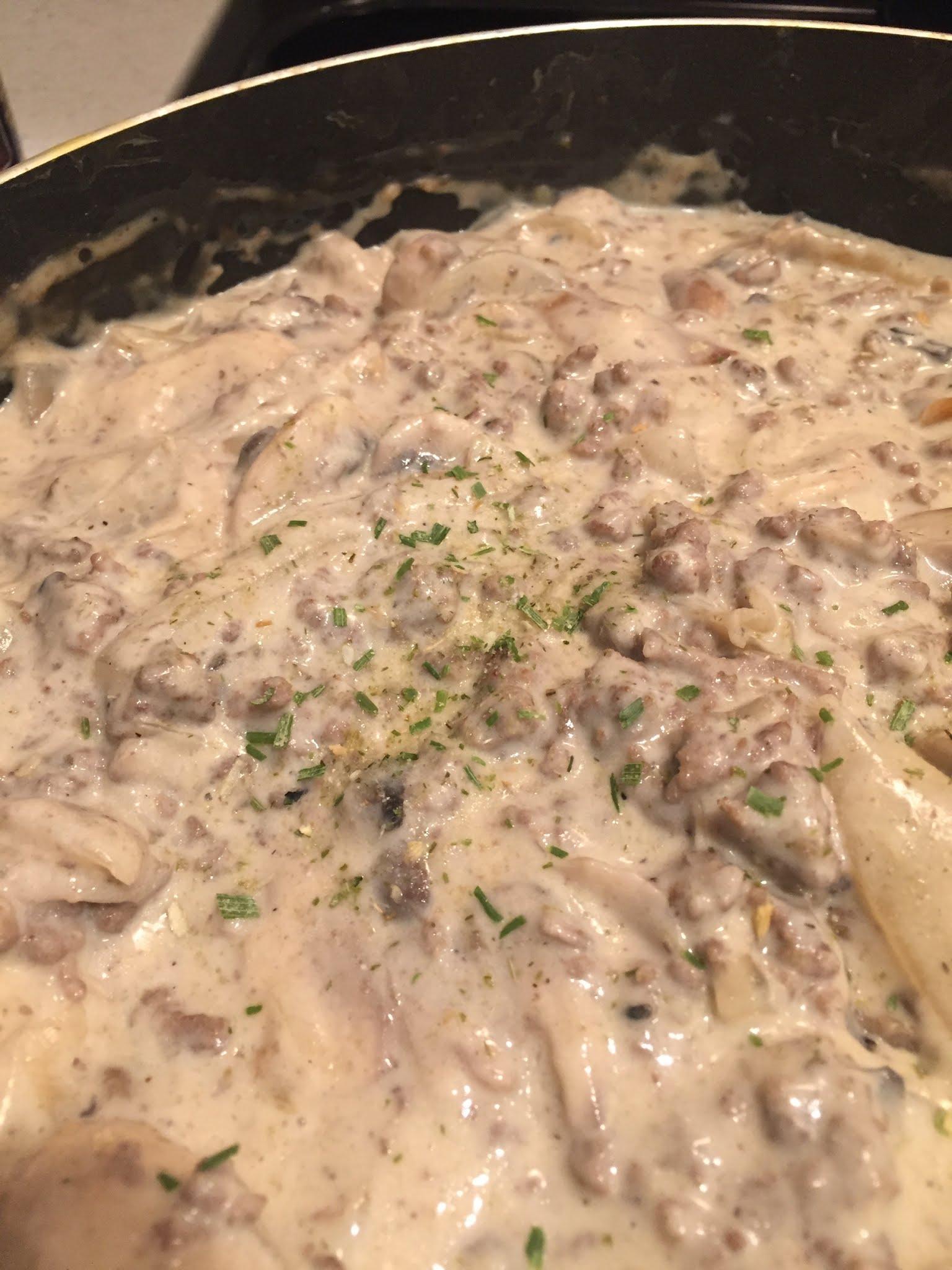 Stroganoff can be made with chuck steak all the way up to hoity-toity beef tenderloin perhaps like Count Pavel Stroganov had in 18th-century Russia. This version sits on the other side of the spectrum with ground beef, but my kids gobble it up just the same.