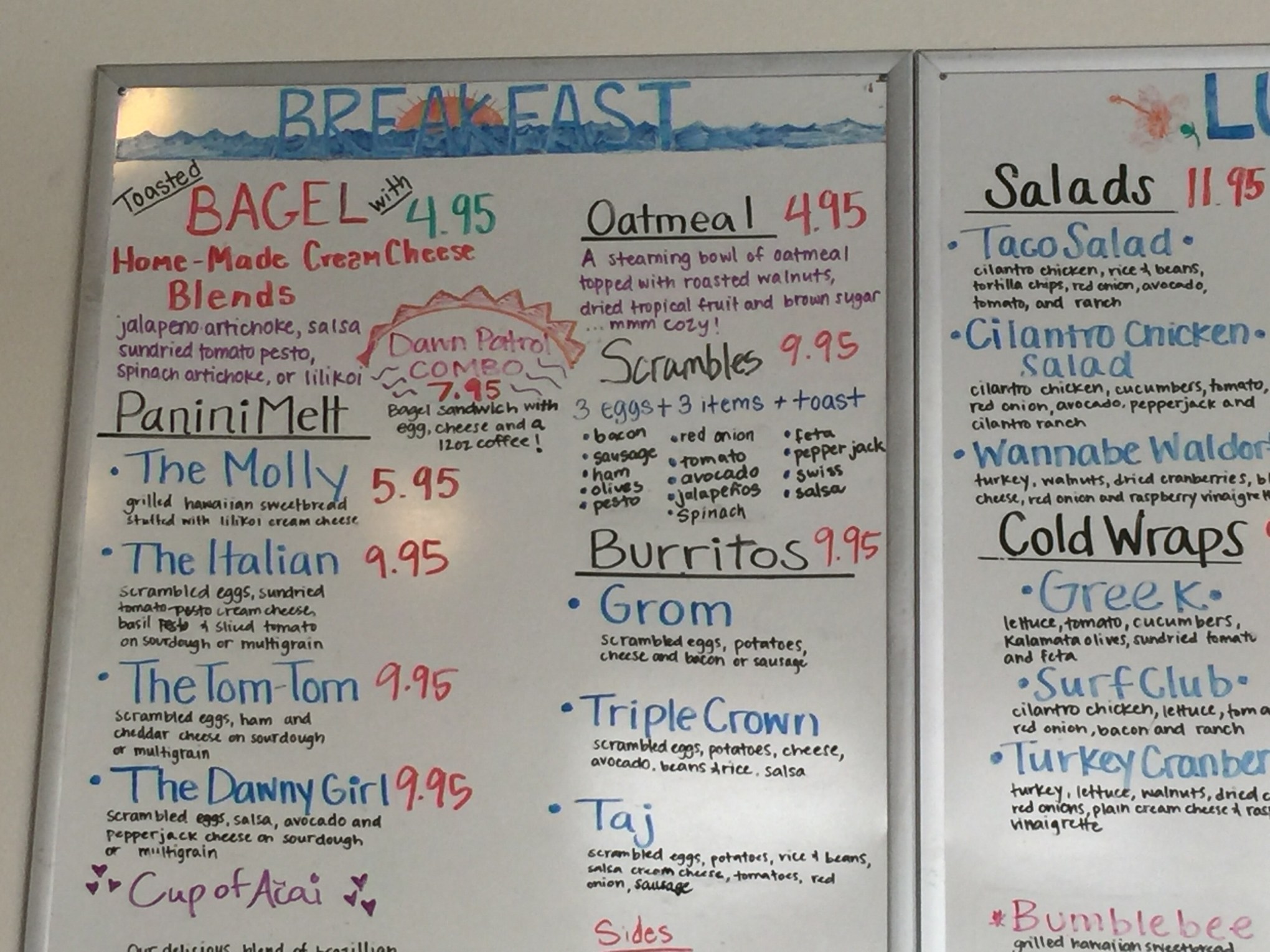 I went to Surf Break Cafe one day. I had a nice breakfast with a fellow mama and we talked about our kids, traveling, and blogging. Even though it was a leisurely breakfast, we still ran out of time to talk about all the things we wanted to talk about. That’s ok, it just gives us a reason to set another date to get together.Surf Break Cafe is located on Haili Street in Downtown Hilo and has been open for a while, but I have never had the chance to go. On the weekday morning that I went, it wasn’t too busy and there were lots of tables open in the cafe. It is a casual and comfortable place to go and you can choose to sit on picnic tables, regular tables, or couches. They also offer outside seating on the sidewalk so you can be a part of the hustle and bustle of downtown. I ordered the Italian Panini Melt which has scrambled eggs, sun dried tomato-pesto cream cheese, basil pesto and sliced tomato on sourdough bread. You can also order bagels, oatmeal, and burritos to go with your coffee.