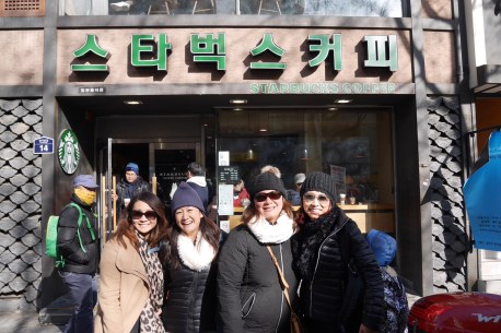 Our next stop was Dongdaemun, a shopping district known for Korean fashion where we found the Olympic mascots who had time to take a photo with us.