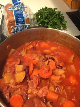 My Portuguese/Irish grandmother Mary did not use those ingredients in her soup so I don’t either. If you can chop stuff you can make this, it’s easy! I have fond memories of eating this soup at her house in Honoka’a with a slice of buttered Wonder bread as a child.