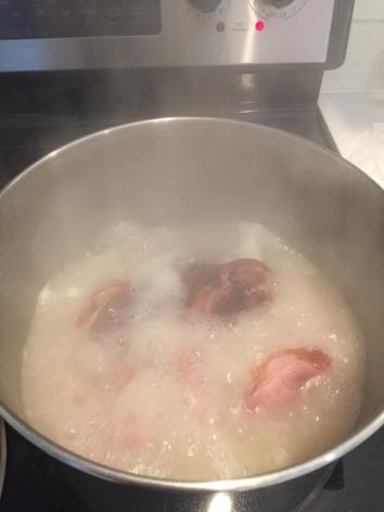 - After the ham hocks have boiled for 60-90 minutes, add a little more water to cover the ham hocks again if needed.
