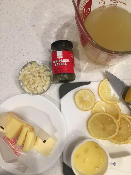 2 lemons (1 thinly sliced, the other to be squeezed for pan sauce)