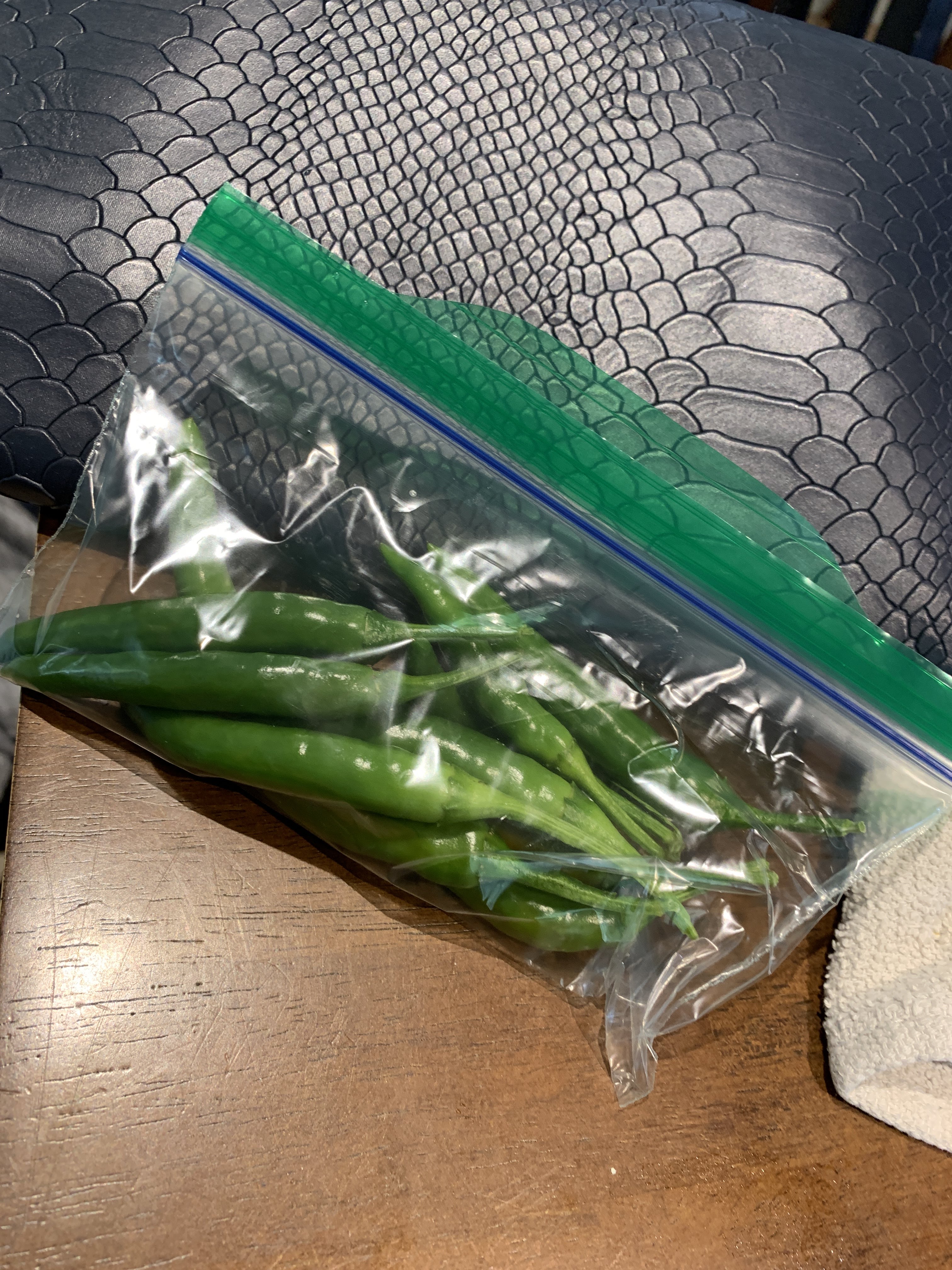 When the peppers started growing, they sure didn’t look like shishito peppers to me! I looked them up and they looked like Medusa peppers. I have never eaten a Medusa pepper and was afraid to try it. I picked a few and shared them with a chef friend of mine.