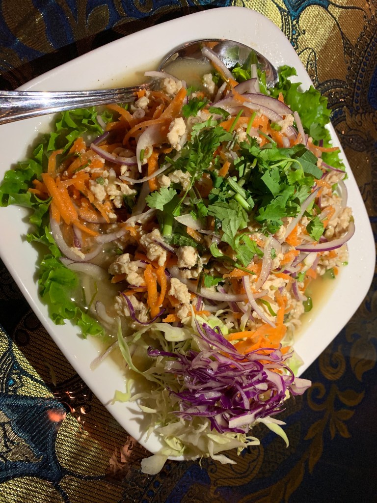 I insisted on having my favorite salad–Larb Gai. I want to eat it again.