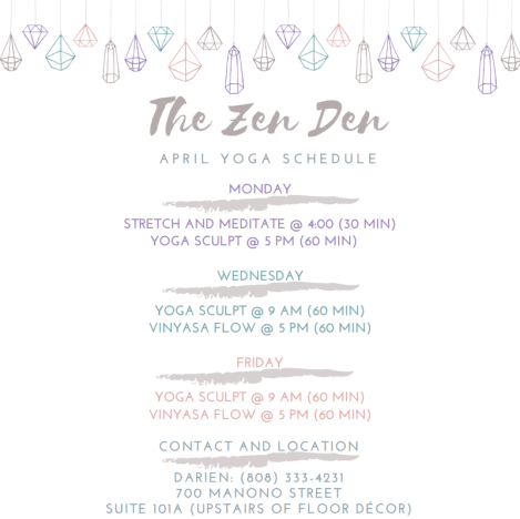 Recently we’ve been going to Sculpt yoga at The Zen Den on Manono Street. If you love yoga and would like to incorporate weights and cardio into your practice, sculpt yoga is definitely for you!