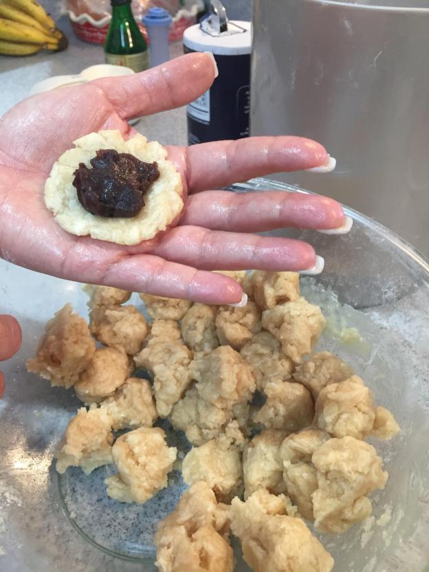 I shared it with my family and everyone enjoyed it. Although Dean shared the recipe with me, I still wasn’t quite sure of the method. That sent me on a quest to look at other pie crust manju methods. Below is what I have pieced together. My manju still do not look as nice as Dean’s but it tastes like his, I need to practice!