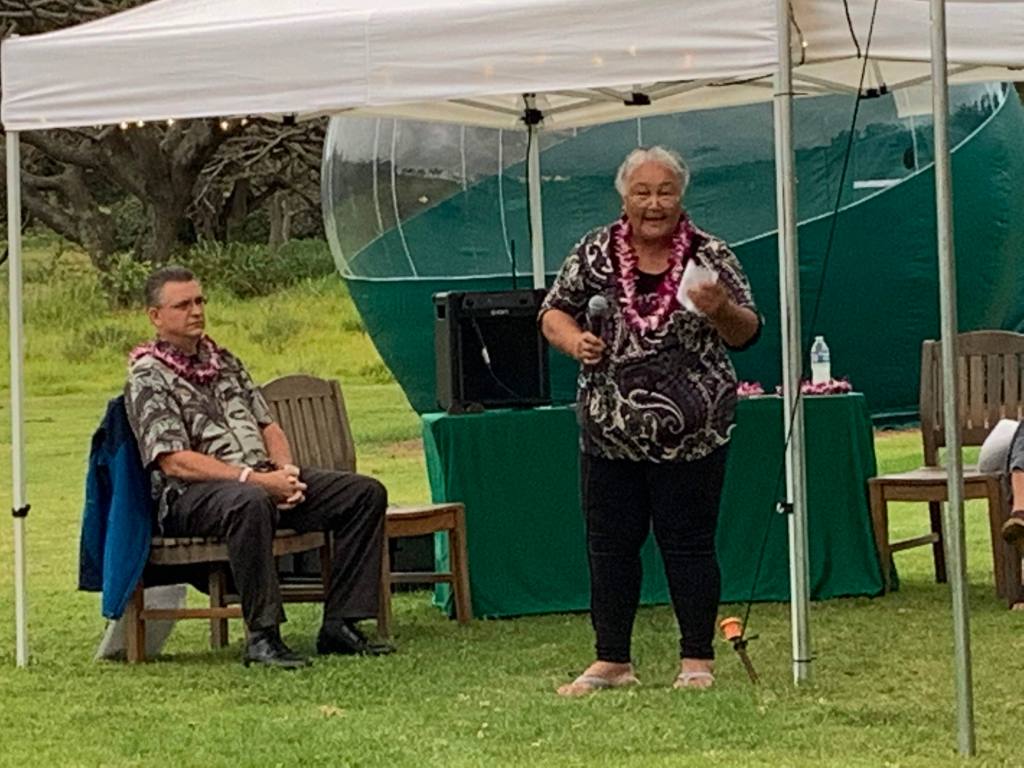 On this evening, we were lucky enough to hear from Aunty Lei (Leina’ala Keakealani Lightner), an 8th generation resident of Napu’u who talked about her ‘ohana’s connection to this ahupua’a. Her father was the last paniolo at Pu’u Wa’awa’a and today her son is working at Makani Golf Club. Aunty Lei’s father was one of the leading kupuna in supporting the establishment of this golf course in 1988 as a way to allow the land to continue to support and sustain the local families who would like to continue to live in the area.