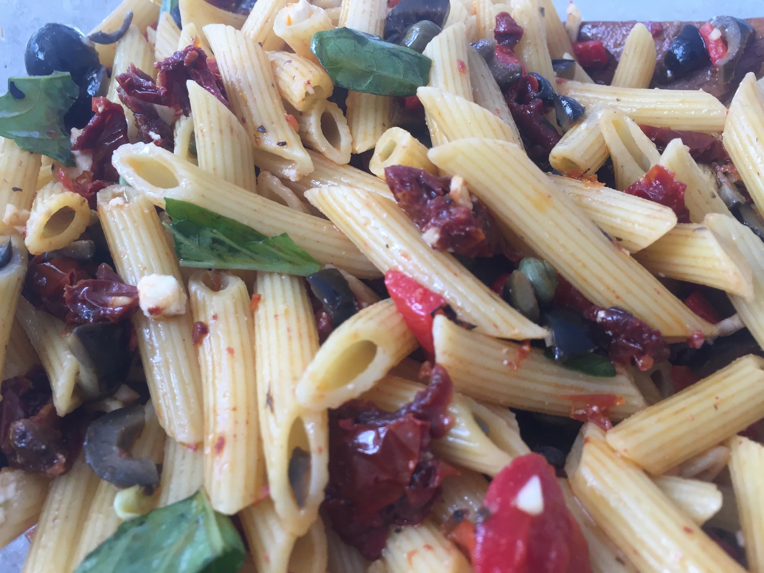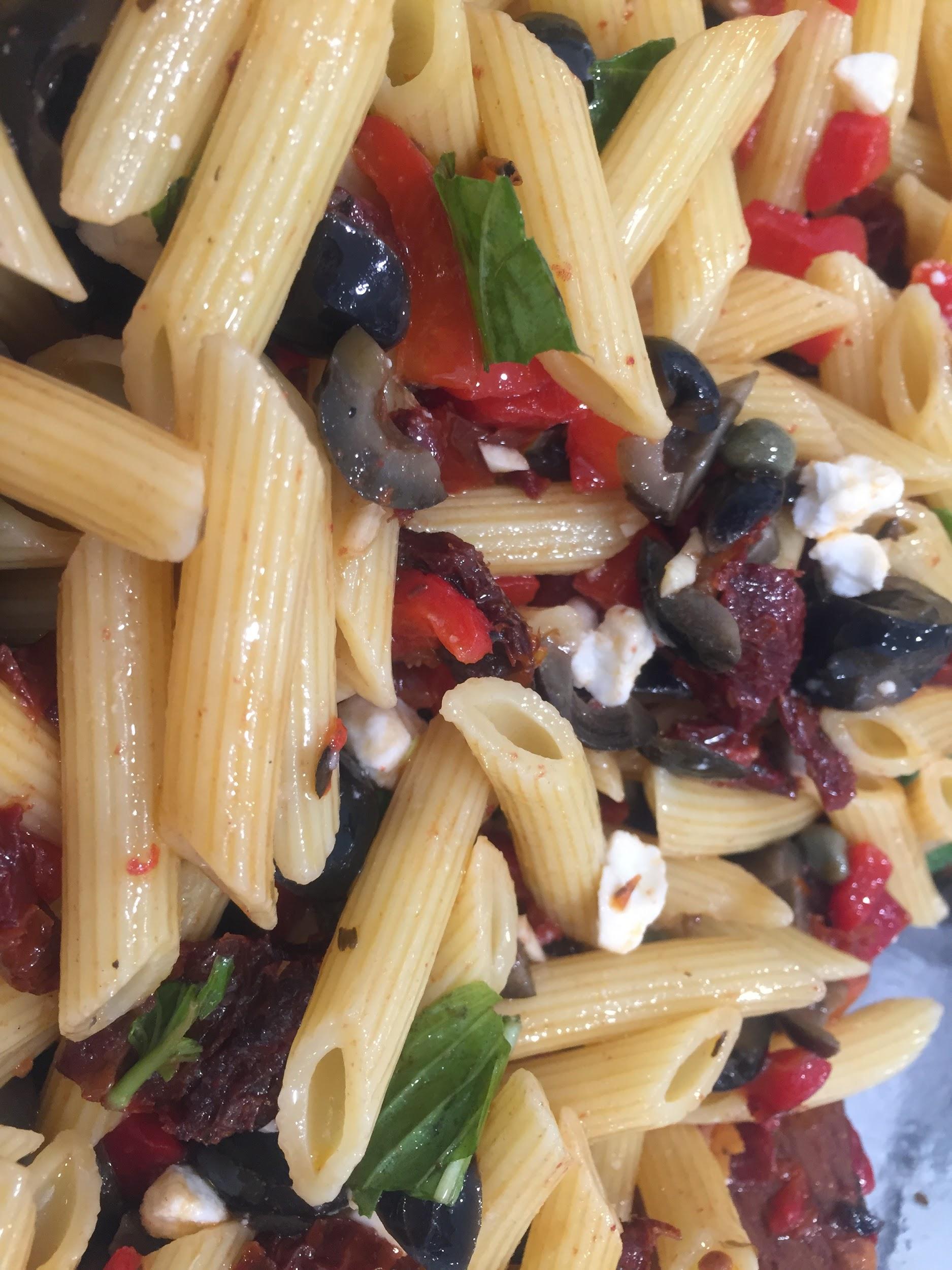 If I let my son pick a “snack” before or after baseball he often wants to go to Island Naturals for their Greek Pasta Salad. It’s good, but it’s also pricey. I shudder every time I buy it for him because we all know pasta salad is very easy to make.