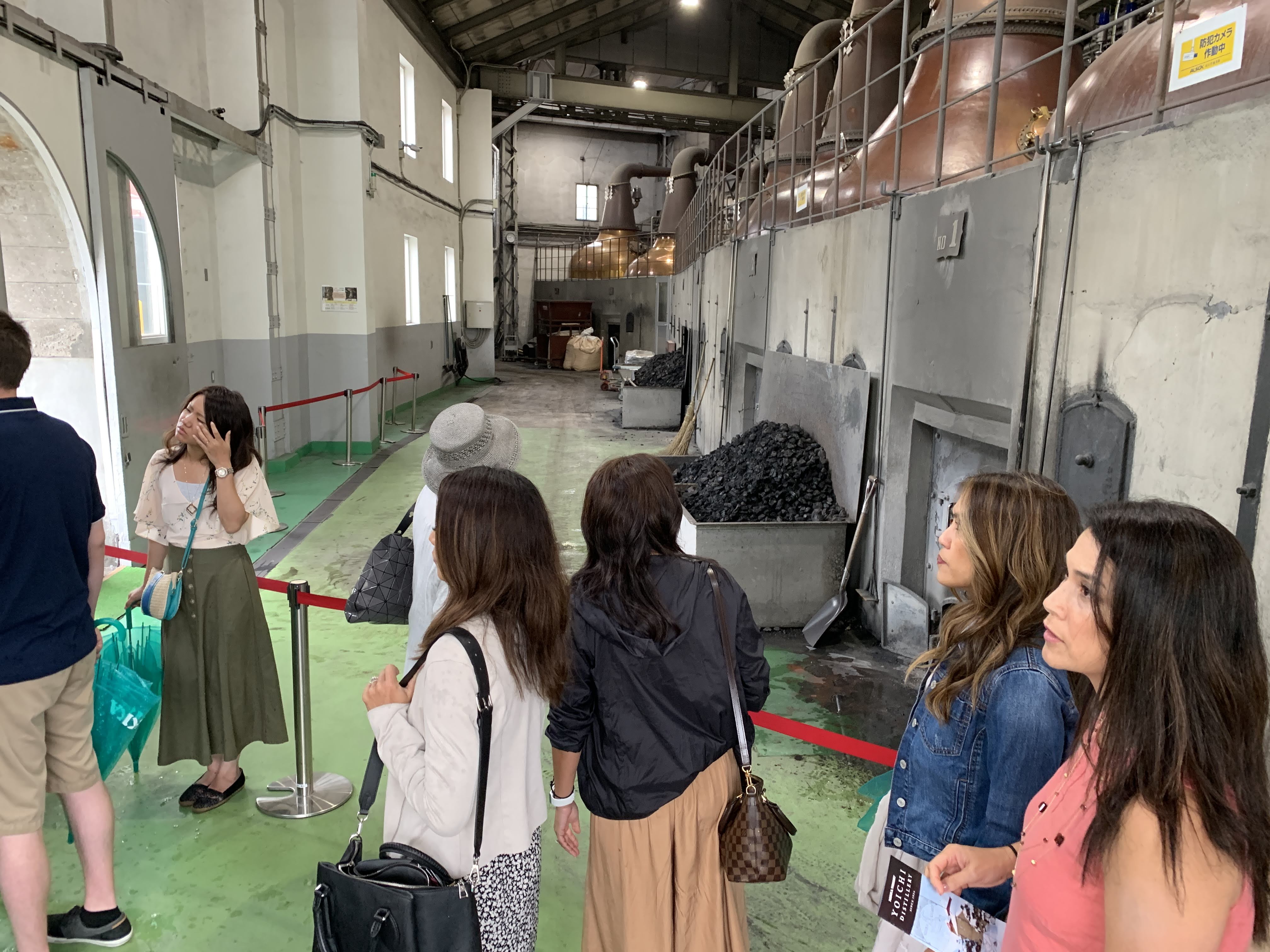 We designed and blew our own glass! After making our glasses (to be picked up the following day), we headed to Yoichi to visit the Nikka Whisky Distillery where we could buy something to put in our beautiful glasses. We hired two taxis to take us there.