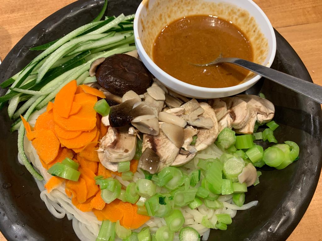 My family enjoyed hot ramen but I was too hot and decided to try the vegetable cold udon dish. It was a more refreshing option for me and went well with the banbanji chicken side order we shared.