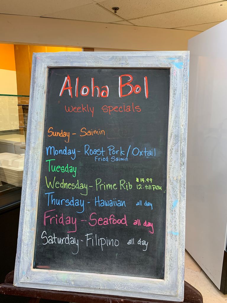 After the game, we stopped at KTA Waimea and were thrilled to still find mangos for sale. We then headed to the deli counter called Aloha Bol where we got some Filipino food for lunch. Everyday, you’ll find different specials so check it out.