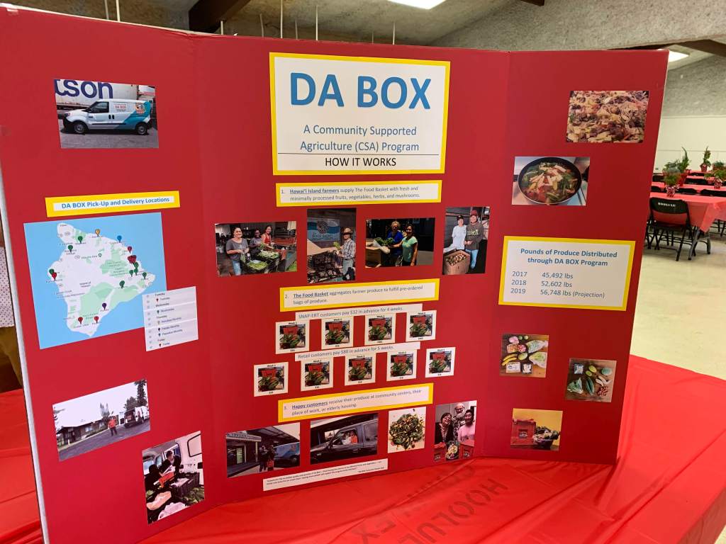 As of mid-October for the year 2019, the Hawaii Food Basket has purchased over $134,000 in produce from 47 Big Island farms. This produce is then sold at affordable prices through the DA BOX CSA program and through DA BUS Mobile Market program. In addition, customers who pay with their SNAP-EBT account receive an even larger savings. SNAP-EBT customers who purchase two weeks of DA BOX produce receive an additional two weeks of produce for FREE plus 50% discount on purchases at DA BUS Mobile Market. Here is a link to the days and locations for the DA BUS Mobile Market. https://www.hawaiifoodbasket.org/da-bus