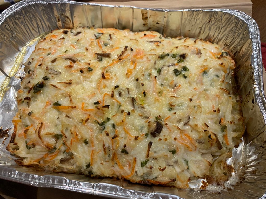 At the end, turn up the heat so that you get some browning on top. Perfect easy recipe for a potluck.