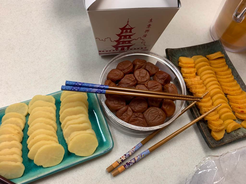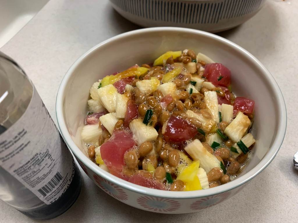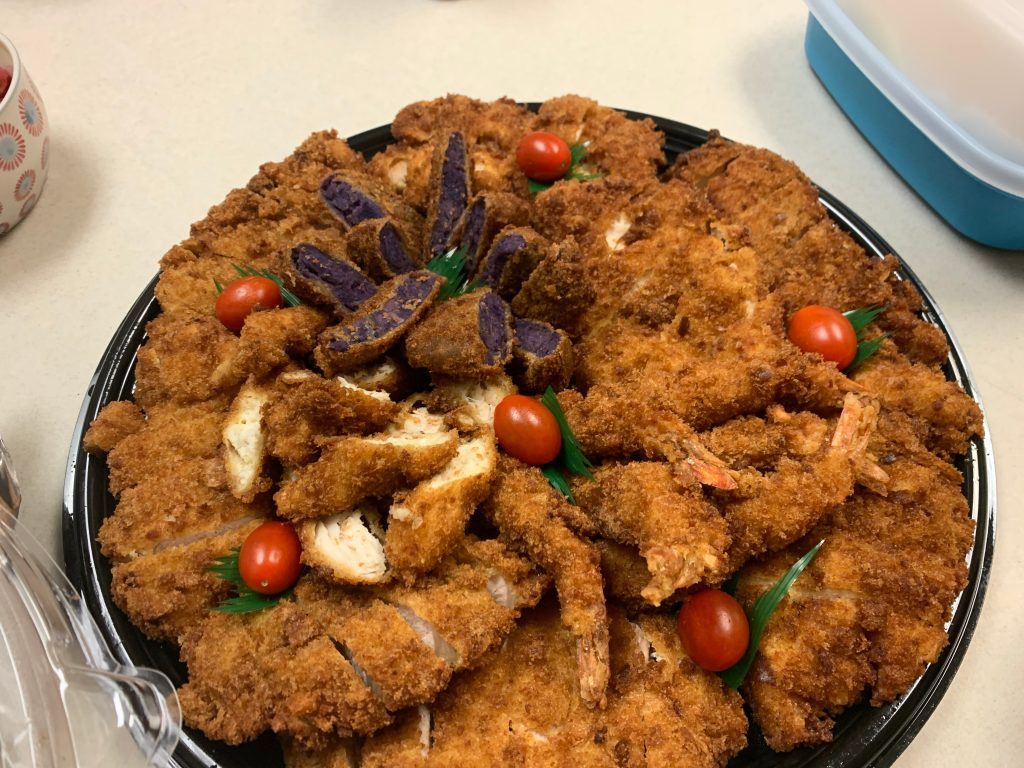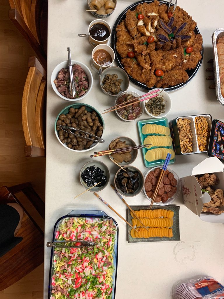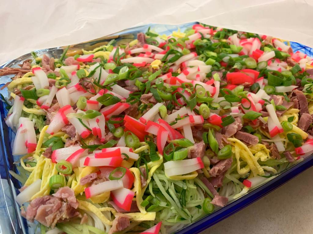 Kerri hosted a gathering at her house recently and I made her salmon dish to take to her house. It must have come out okay because I had a couple of requests for the recipe that night. In addition to the salmon, we enjoyed several nabe (hot pot), assorted fried yumminess from Aomatsu, ham, Dorito salad, somen salad, natto cocktail, and so many desserts! Living Hilo Style!