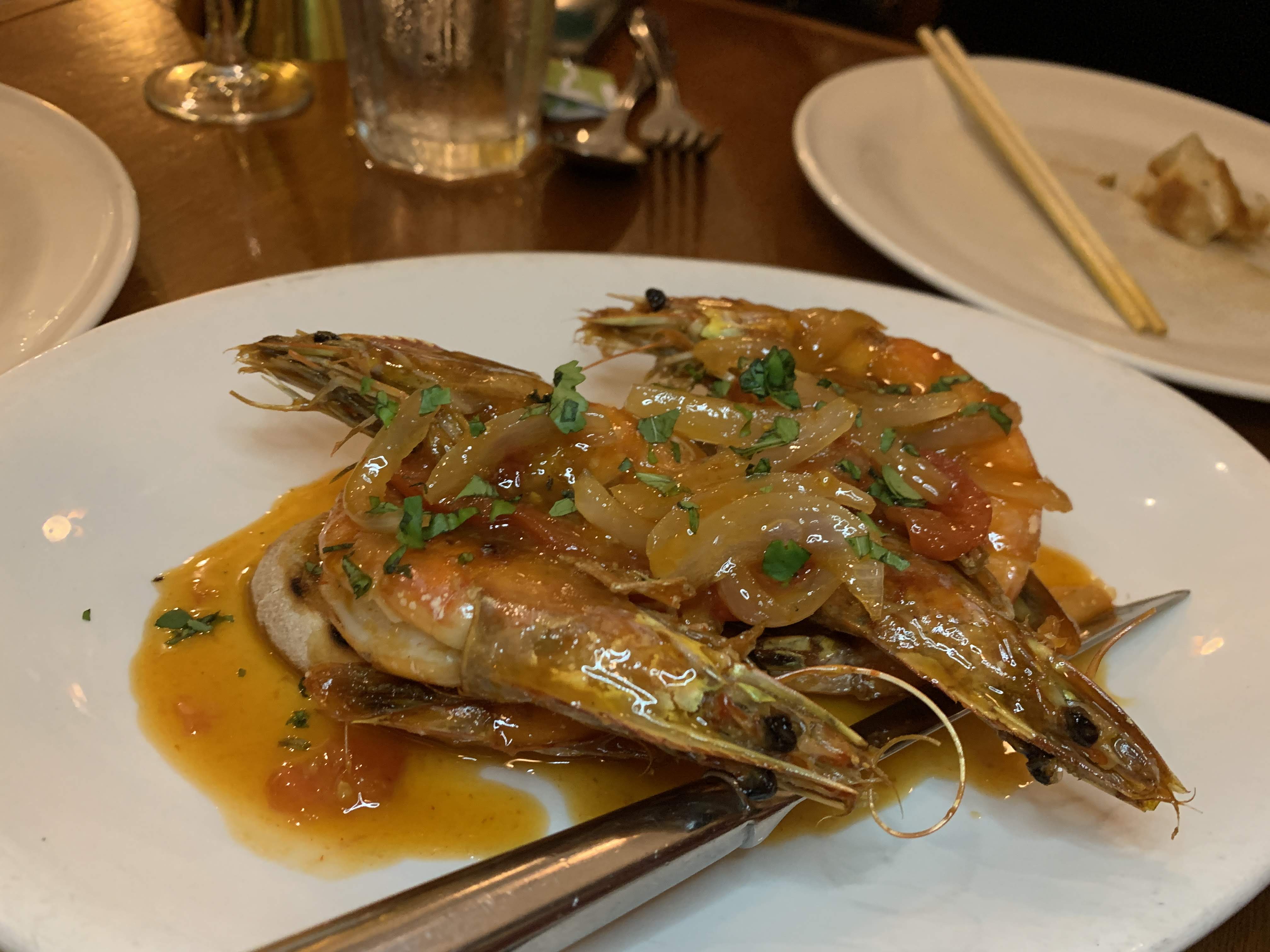 - Saigon Scampi — Head-on Kauai sweet prawns, garlic, wine, butter, Mom’s special fish sauce