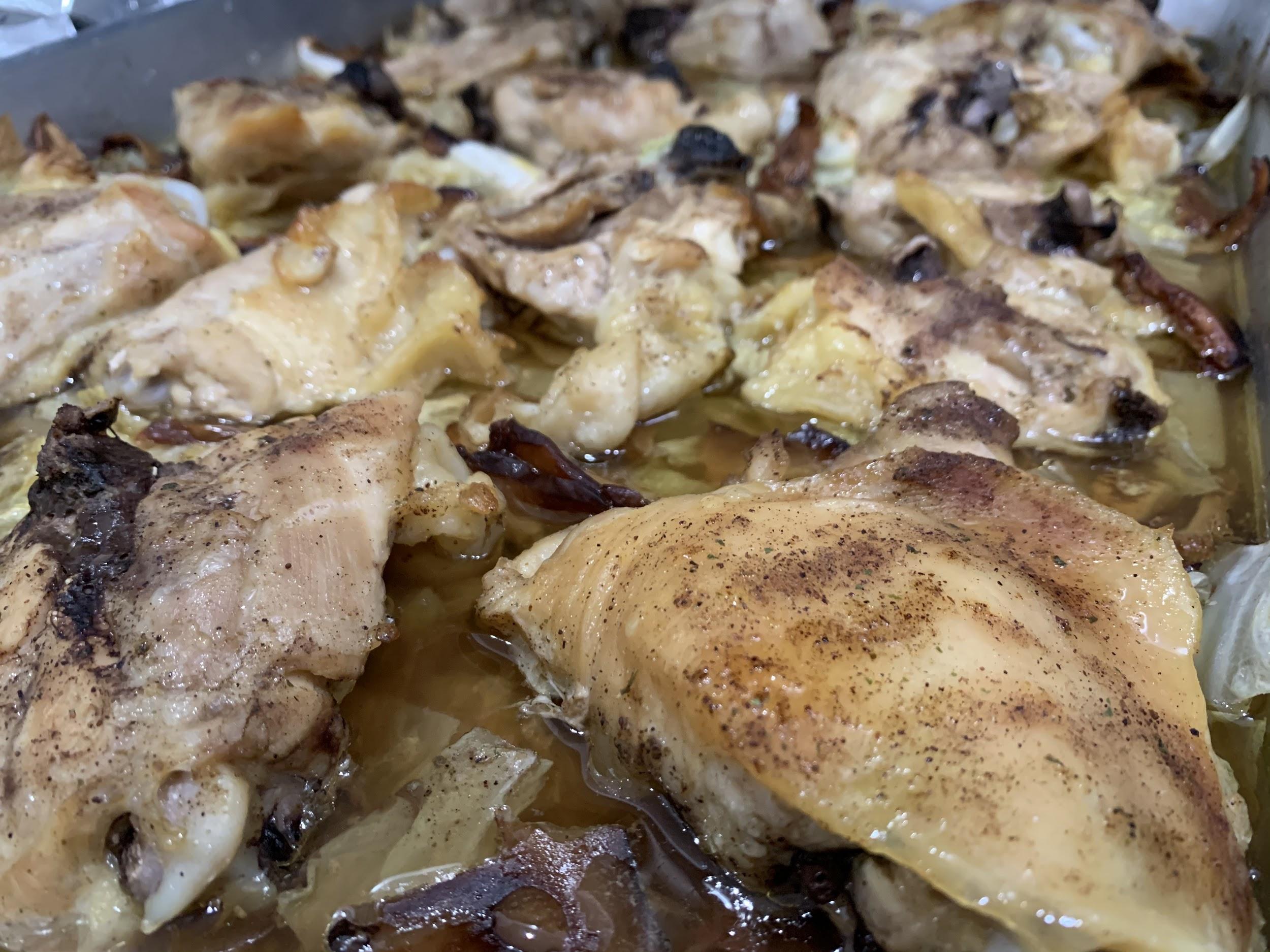 - 5 lbs. chicken thighs, defrosted (I used bone-in but boneless/skinless is much faster)