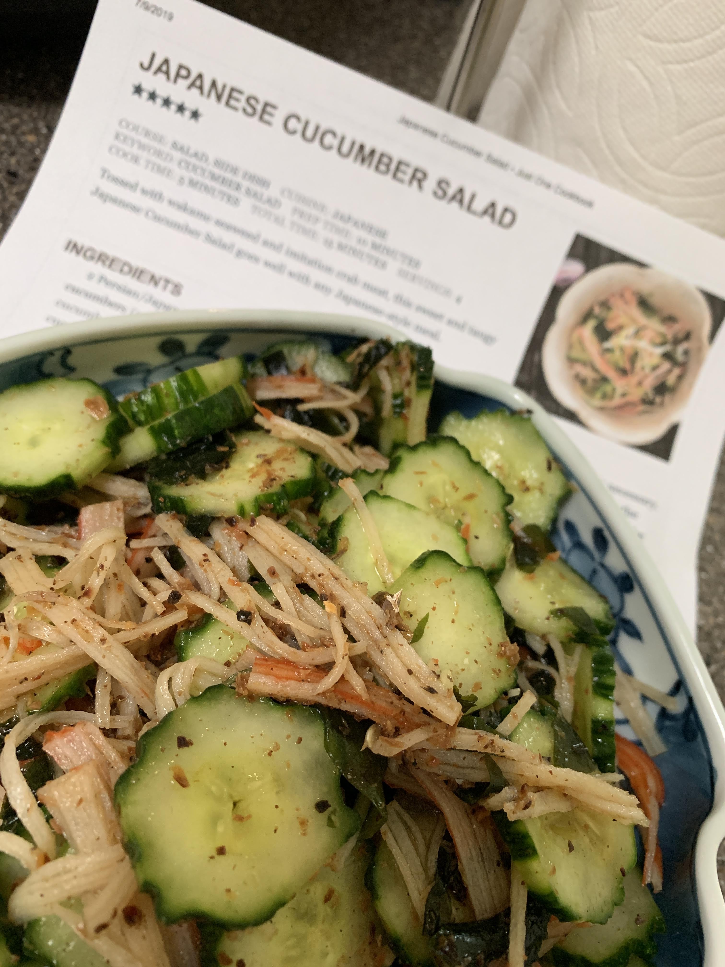 I love Nami’s JustOneCookbook‘s recipes and referred to it to celebrate this cucumber harvest. It was so easy. You can find Nami’s recipe here.