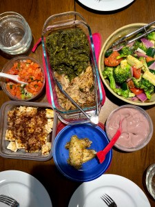 All it requires you to do is to get a pack of kalua pork and put it in a baking dish. Then open two cans of spinach (I try to drain most of the liquid) and add it to the kalua. I put the spinach on one side since I have a picky eater in my house who prefers not to eat the spinach. Otherwise, I would put the spinach all over the top of the kalua.