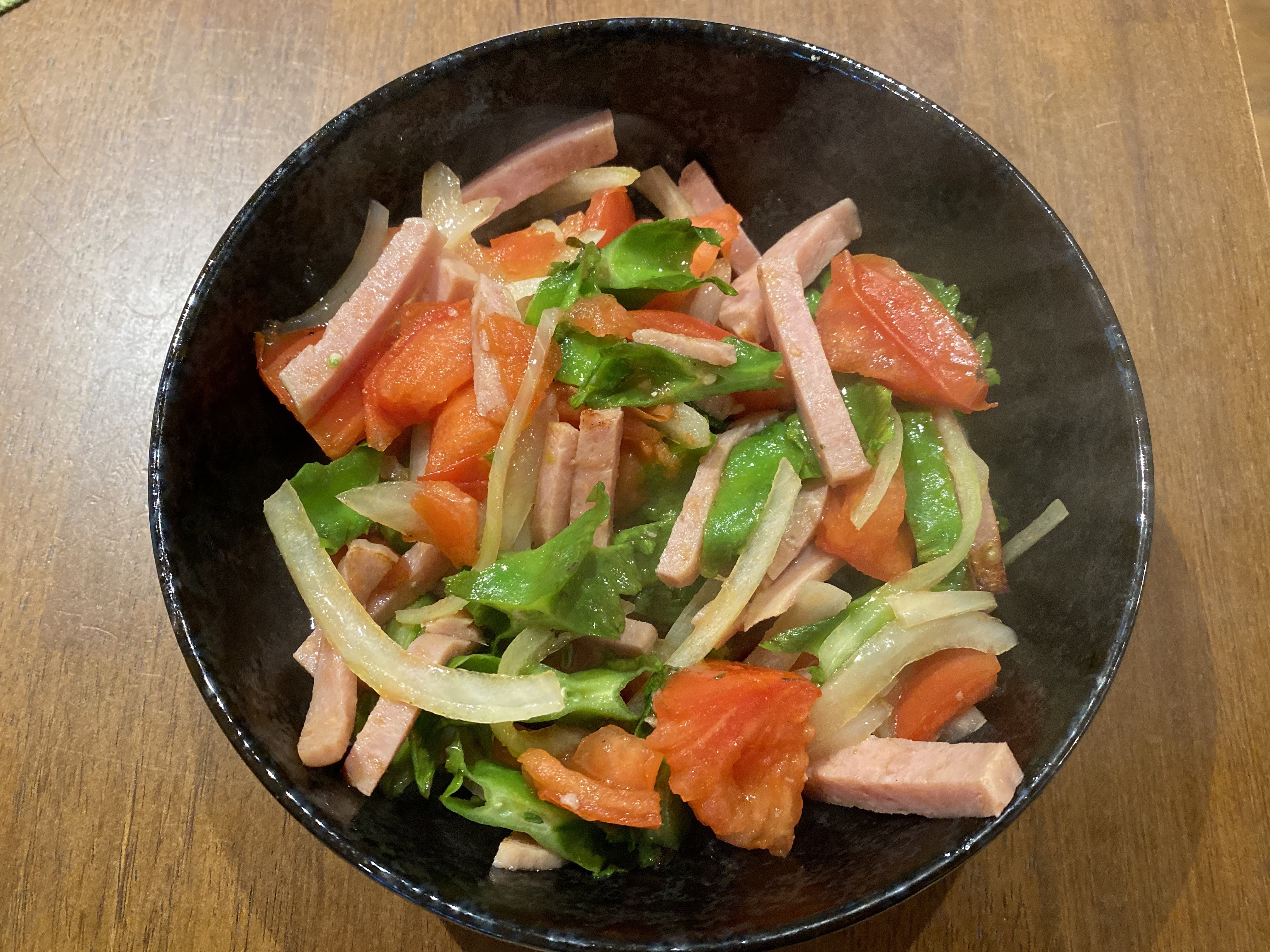 I sliced the wing beans, a tomato, some onion, and spam. I sauteed it in a pan and seasoned it with a little bit of garlic salt and about a tablespoon of patis. That is it! Living Hilo Style.
