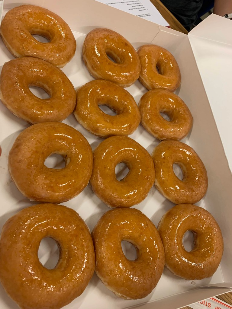 At this particular meeting, one person had just come back from Maui, so we had a box of Krispy Kremes!