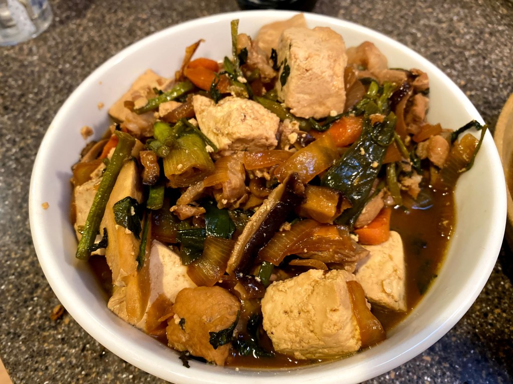 I had a Thai cooking class through Airbnb Experiences the next day so the eggplant and bok choy were perfect for that. The following day, I decided to use the watercress in a Hawaiian Electric pork tofu and watercress stir fry. It was easy, quick, and yummy! Just the kind of recipe I like. I got some chopped pork and firm Oshiro tofu from KTA and I had everything else at home.