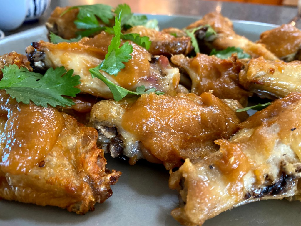 The miso chicken wings were a hit! Just coat about a dozen chicken wings with salt, pepper, and oil and pop it into a 400 degree preheated oven for 40 minutes, turning the wings at the 20-minute mark. They will be beautifully golden and crispy.