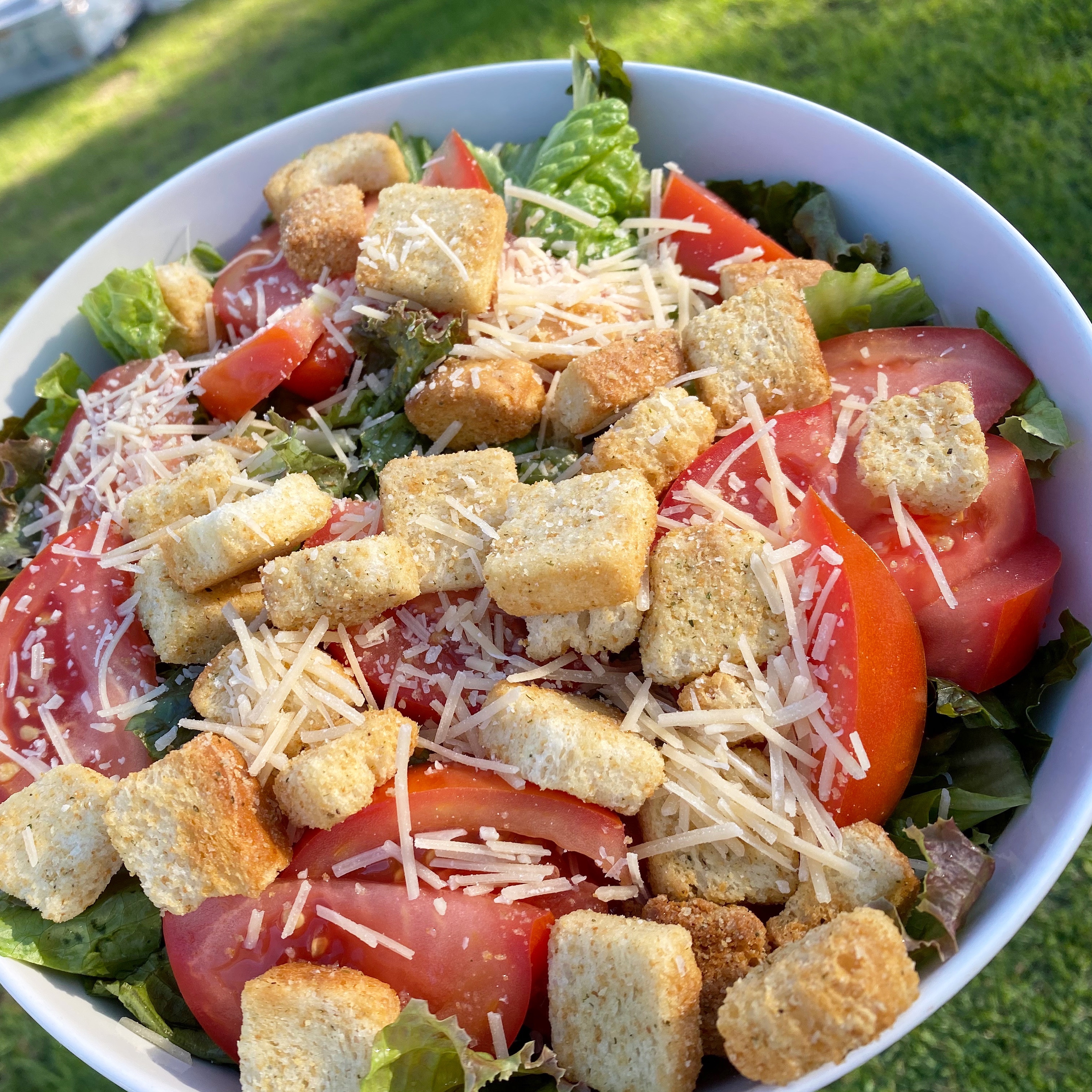 I recently got a huge box of veggies from Hawaii-Eco with a beautiful head of organic Kamuela lettuce from Ano’ano Farms. I wanted to eat it the day I got it because it looked so fresh. I paired it with a large and firm red tomato from Kawamata Farms and added some croutons and shredded Parmesan cheese on it. I made a quick vinaigrette for it that was inspired by the Sweet and Tangy Honey Vinaigrette recipe by RachelCooks.com that is perfect for a green salad. I used my salad dressing mixer that I got years ago from a Pampered Chef party. It is so easy to just add the ingredients into the container and mix away and just pour right from the mixer. Then when I’m done, I just throw it in the dishwasher for easy cleaning. This dressing is a mixture of balsamic vinegar, olive oil, honey (I used a locally made honey), Dijon mustard, and some salt and pepper. That is it.