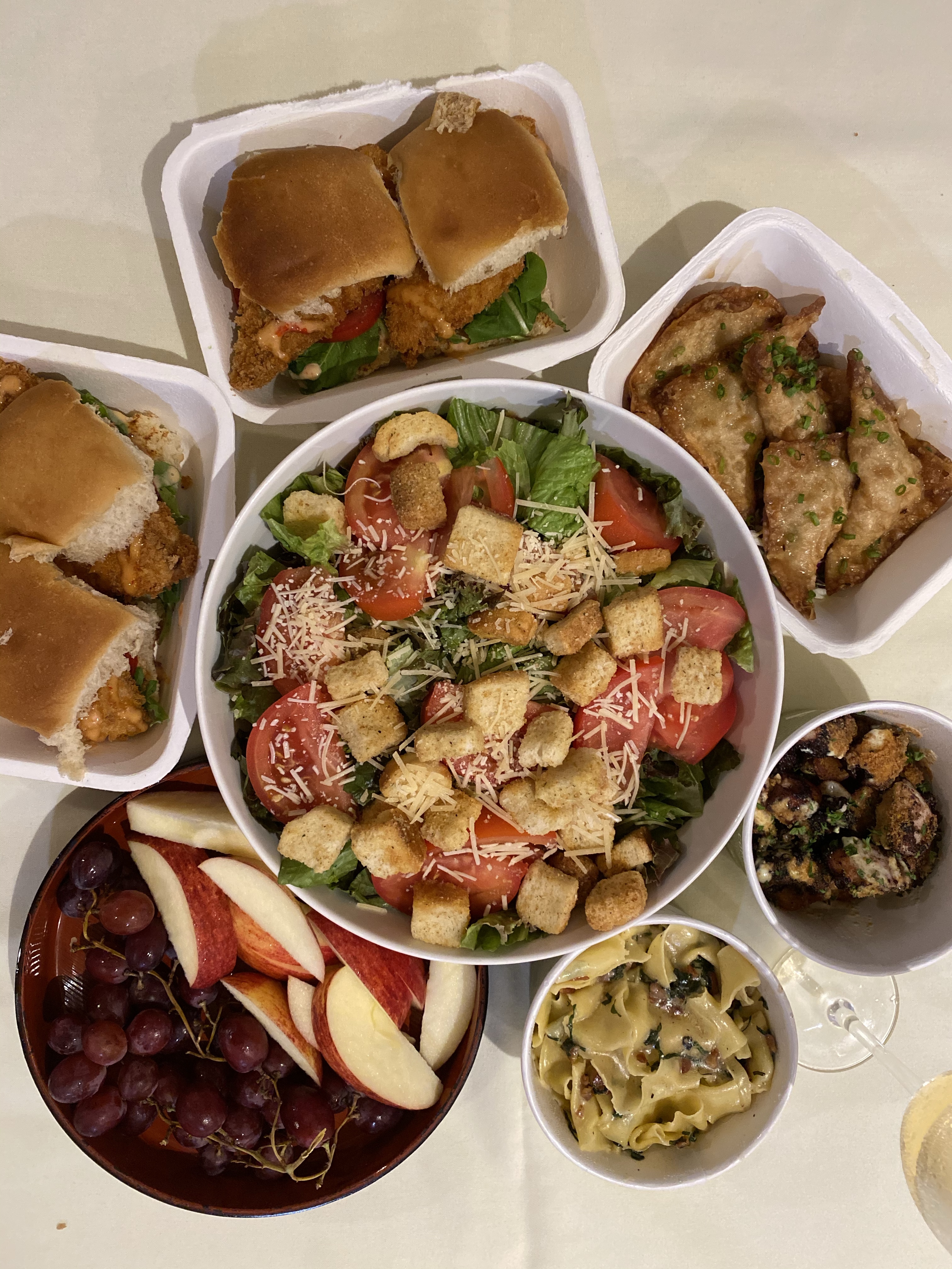 This salad was the perfect side dish to go with our Moon and Turtle takeout — pappardelle with pancetta and kale, oyster sauce chicken wontons, mahi katsu sliders, and patatas bravas. Living Hilo Style in the best way with local eats.