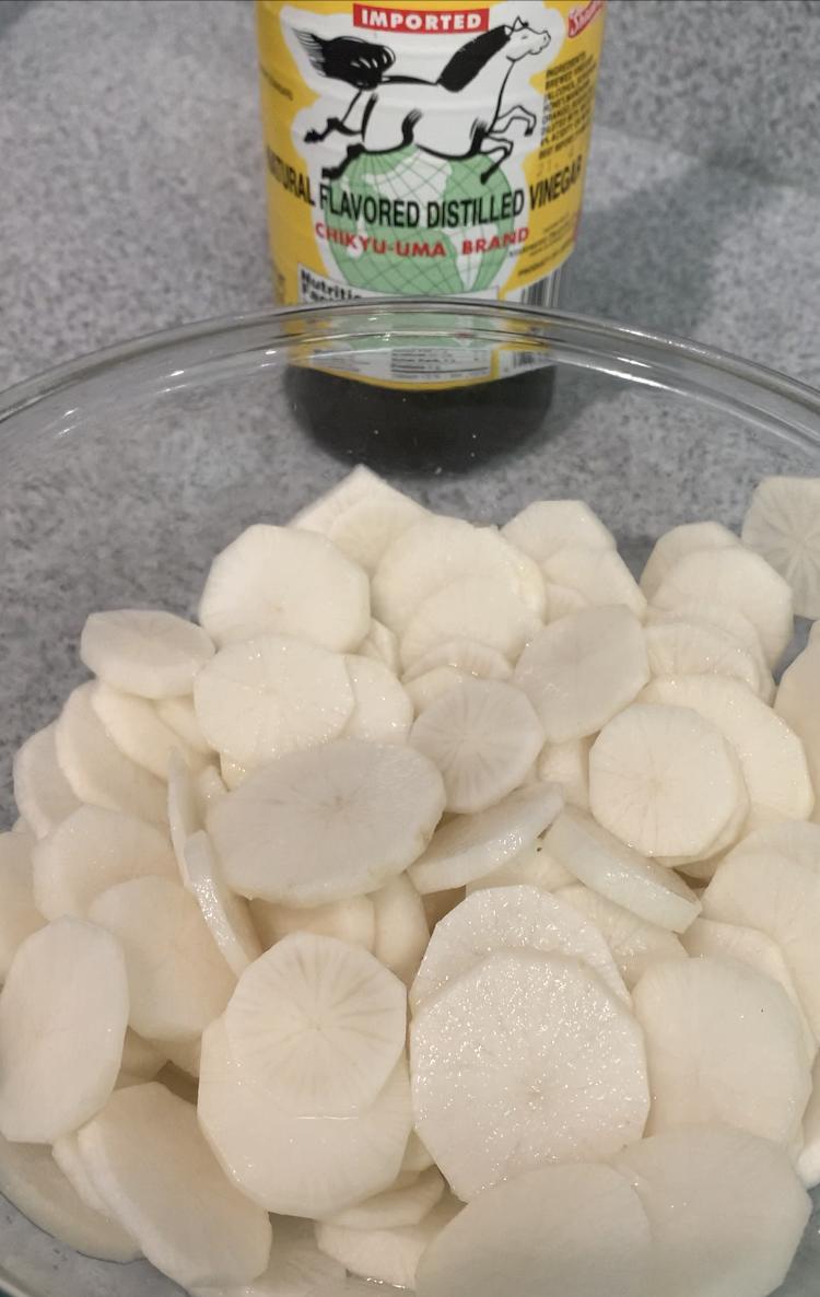 - Pour the sauce over the daikon and refrigerate for two days.
